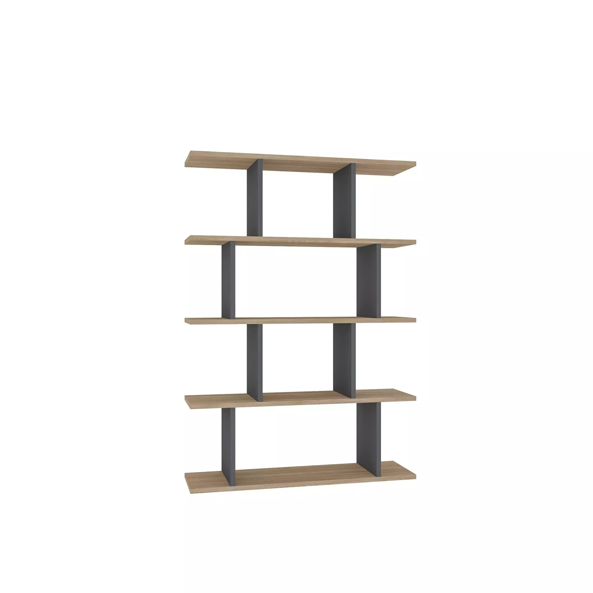 Bokhyllan har en vacker kombination av ek- och antracitfärger som ger varje rum en sofistikerad touch. De kontrasterande färgerna skapar en visuellt fantastisk pjäs som enkelt kompletterar alla inredningsstilar.