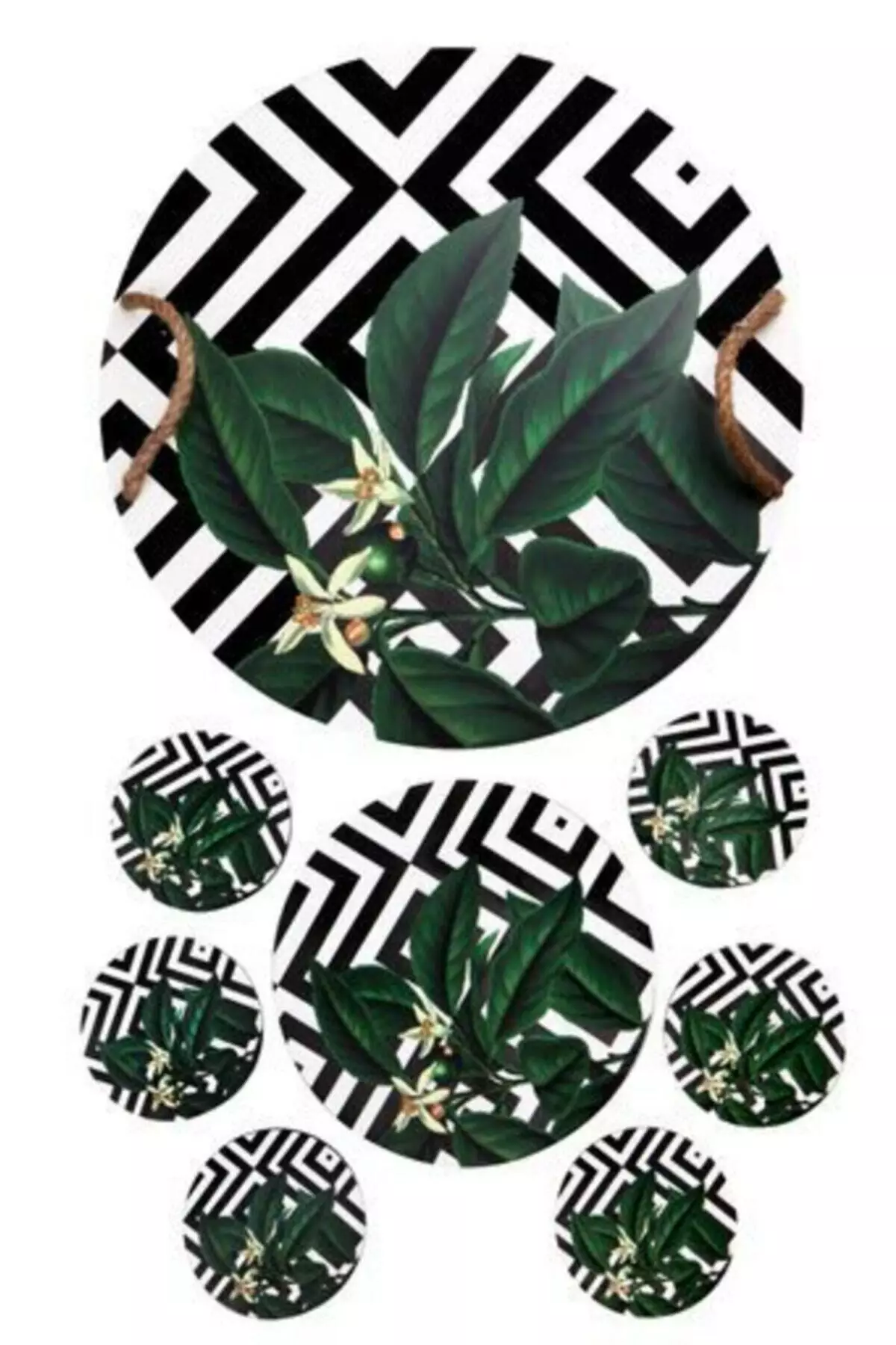 Med sin eleganta och moderna design passar detta set perfekt till alla typer av dukningar. Glasmattorna, med en diameter på 8,5 cm, ger en elegant och praktisk yta för dina glas, medan underlägget, som mäter 18 cm i diameter, ger en sofistikerad touch till ditt bord. Den rymliga brickan, med en diameter på 34,5 cm, gör att du kan servera dina gäster med lätthet och elegans.