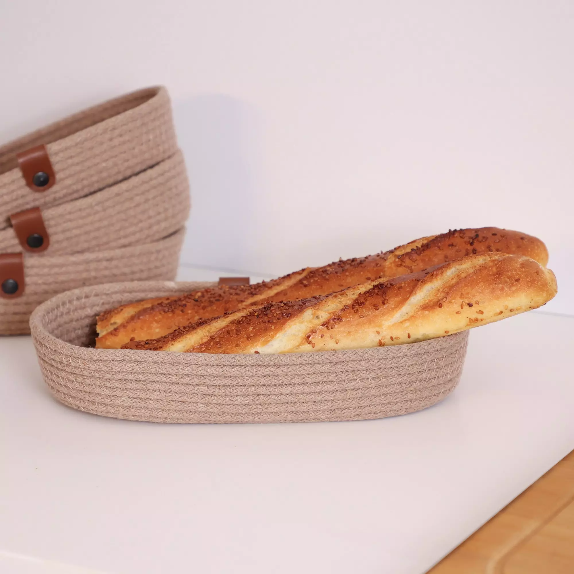 Förhöj din matupplevelse med vårt handgjorda brödkorgsset i bomull.