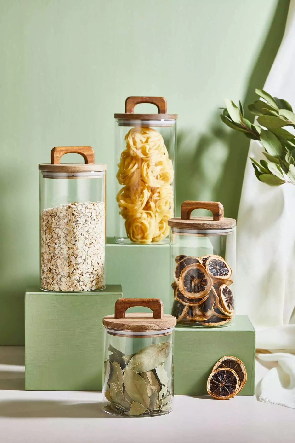 Setet inkluderar burkar i fyra olika storlekar, perfekta för att förvara en mängd olika ingredienser som kryddor, spannmål och snacks. Det transparenta glaset gör att du enkelt kan se innehållet inuti, vilket gör det bekvämt att hitta det du behöver.