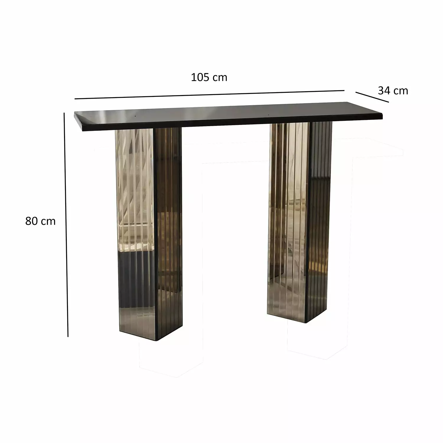 Med sina generösa mått på 105 cm bredd, 80 cm höjd och 34 cm djup erbjuder denna byrå gott om plats för att organisera dina kläder, accessoarer och mycket mer. Bronsfärgen ger en touch av sofistikering, vilket gör den till en perfekt passform för alla sovrumsinredningar.