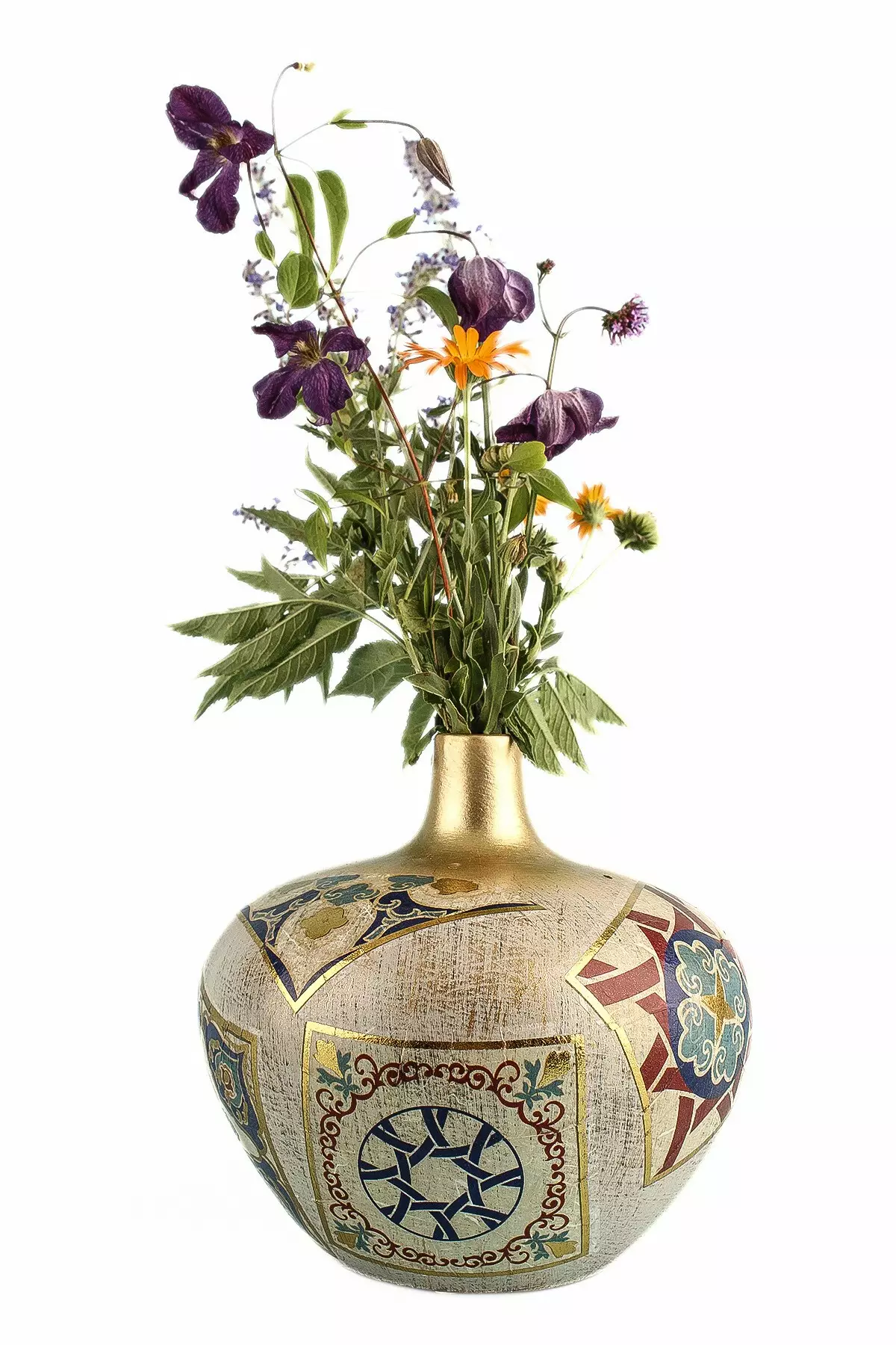 Förvandla ditt vardagsrum med vår fantastiska handmålade keramiska prydnadskruka. Varje kruka är omsorgsfullt tillverkad med kärlek och omsorg, vilket gör den till ett verkligt unikt föremål som kommer att ge en touch av elegans till alla rum. Den intrikata designen och de livfulla färgerna kommer omedelbart att lyfta ditt humör och ge en känsla av glädje i ditt hem.