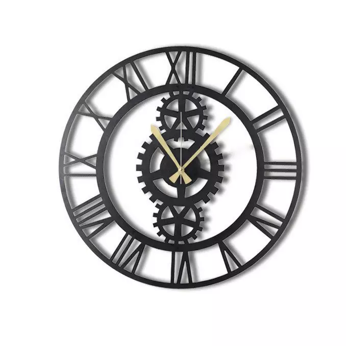 Dekorativ väggklocka i metall, svart, 70 x 70 cm, hållbar, lätt att installera