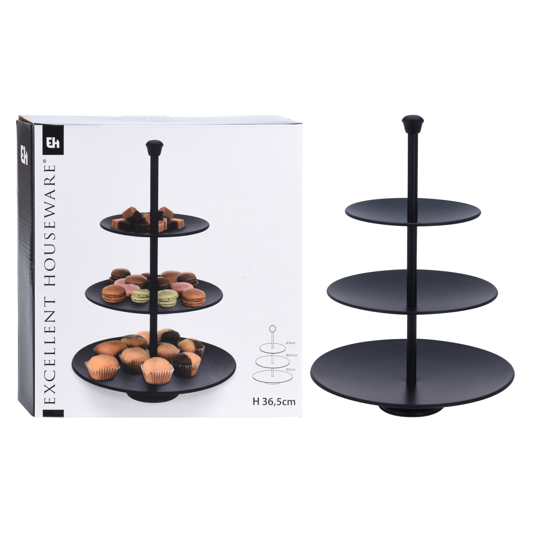 Denna trelagers delikatessfat är tillverkad av rostfritt stål (201-stål) och har en mattsvart finish som ger den ett modernt utseende. Fatets lager är i olika storlekar med diametrar på 250 mm, 205 mm och 160 mm, och den totala höjden är 365 mm. Fatet väger 580 gram och erbjuder ett elegant sätt att presentera olika delikatesser vid fester eller sammankomster.