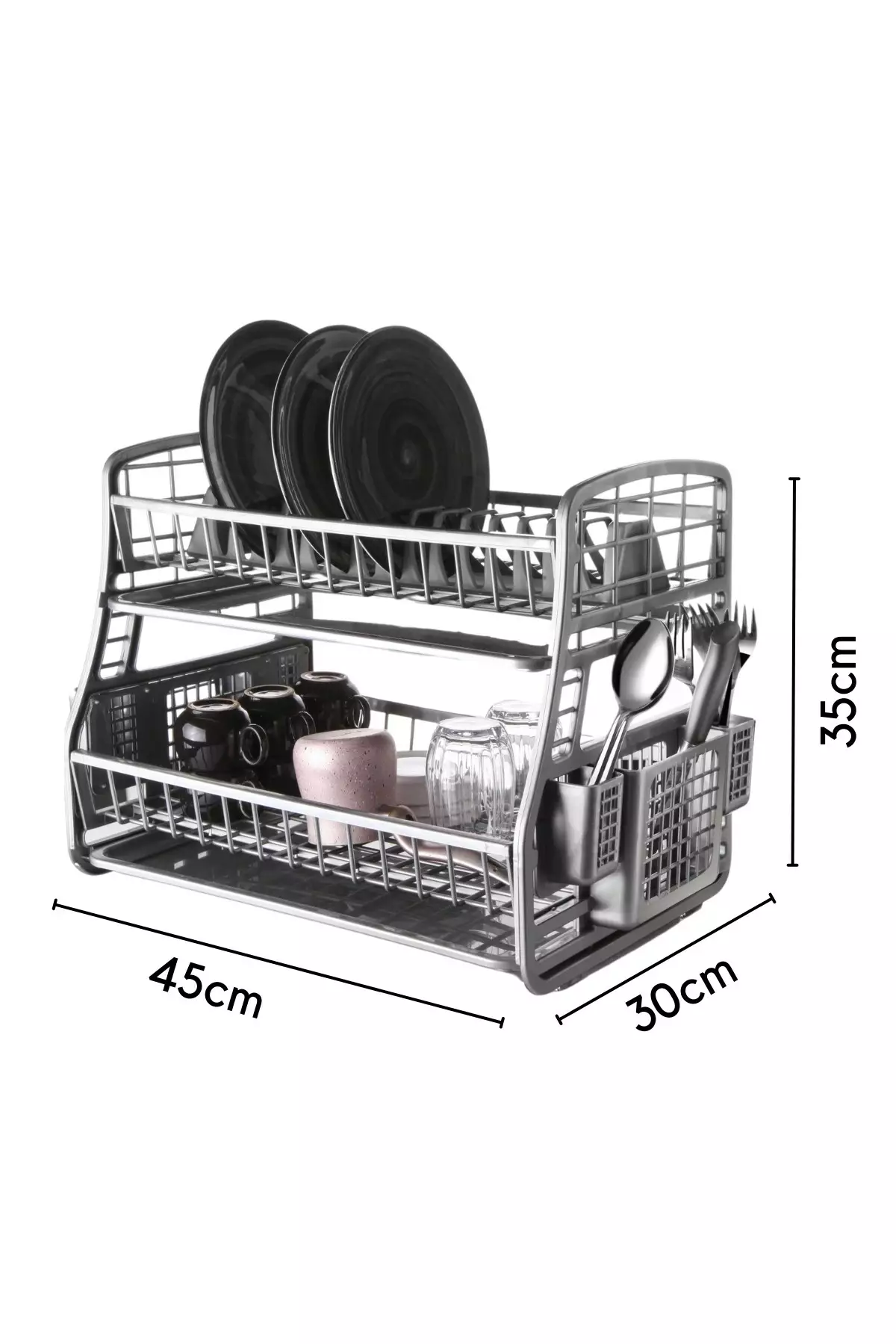 Vårt diskställ är inte bara funktionellt, utan det tillför också en touch av modern elegans till din köksinredning. Den slanka designen och färgen Antracit kommer att komplettera vilken köksestetik som helst, vilket gör det till ett måste i varje hem.