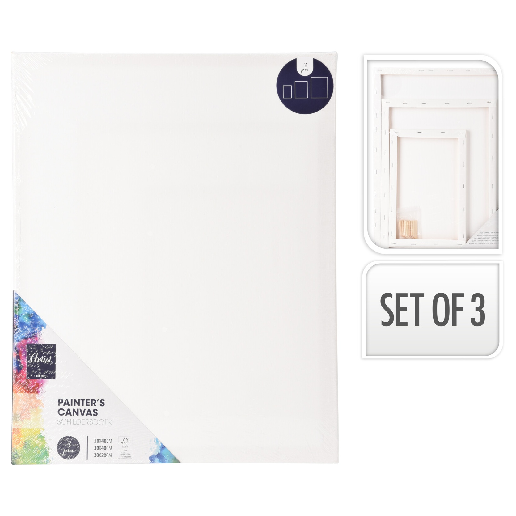 3 st dukar, storlekar 50x40, 30x40, 30x20 cm, vikt 0,65 kg. Material: bomull och FSC-certifierat tallträ.