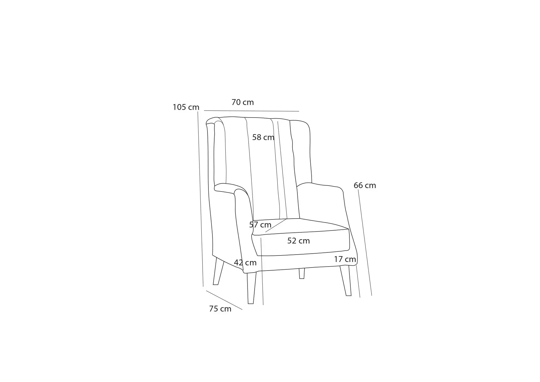 Soffa på 1-sätet har en elegant design med en bredd på 70 cm, en höjd av 105 cm och djup på 75 cm, vilket ger gott om utrymme att koppla av och varva ner. Sitshöjden på 42 cm och rygghöjd på 58 cm erbjuder optimalt stöd för ryggen, medan den 28 DNS -mjuka grå svampen säkerställer en plysch och bekväm sittupplevelse.