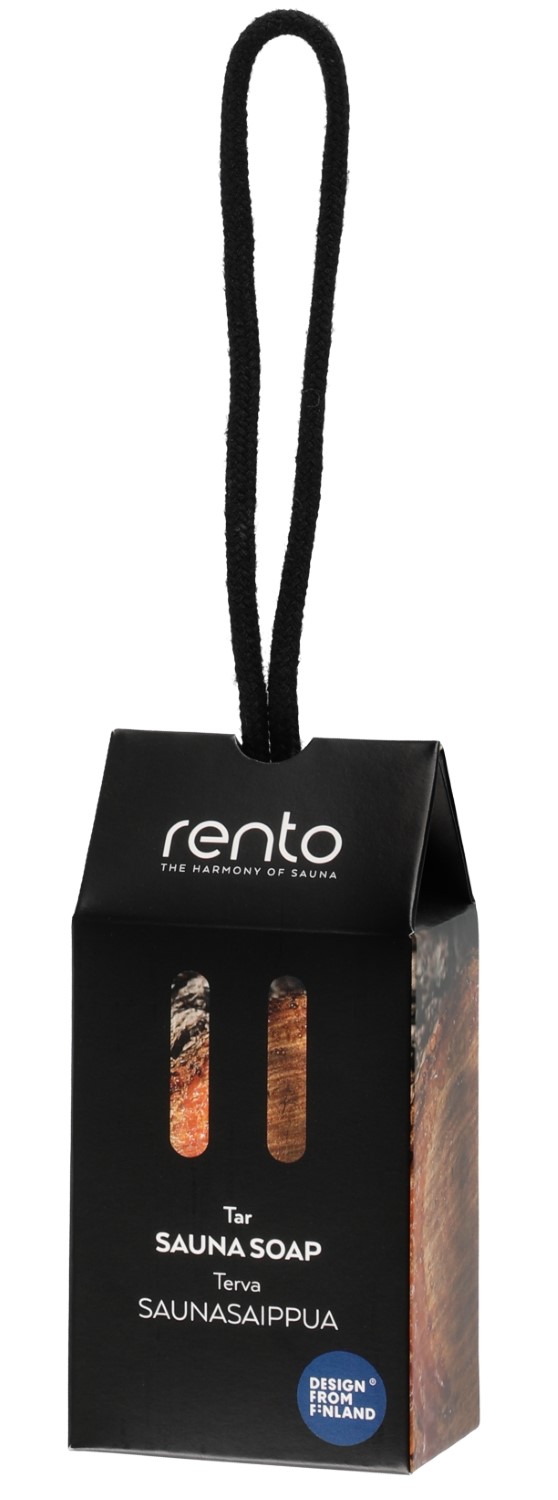 Finsk bastutvål 150g tjära Milt rengörande och mjukt skummande vegetabilisk oljebaserad tvål för hela familjen. Hängande i ett vackert jutesnöre är tvålen alltid redo att användas nära till hands. Doften är en strandbrygga, en tjärad roddbåt och röken från en värmande bastu.