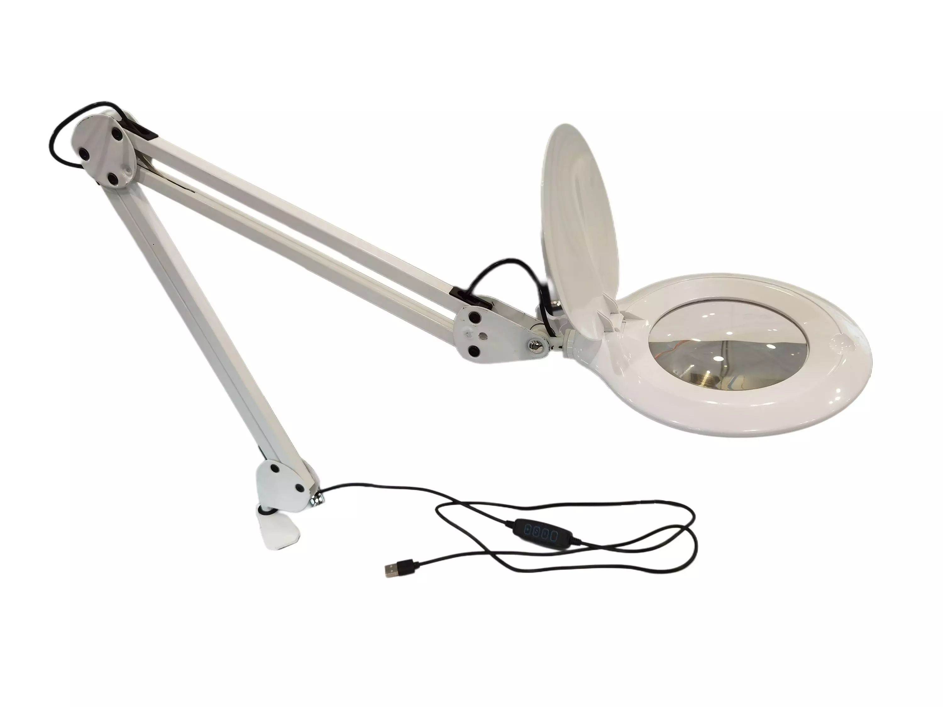 Bordsmonterad LED-förstoringslampa för precisionsarbete. 3x förstoring, 10 ljusstyrkor och 5 färgtemperaturer. USB-driven (väggadapter ingår ej).