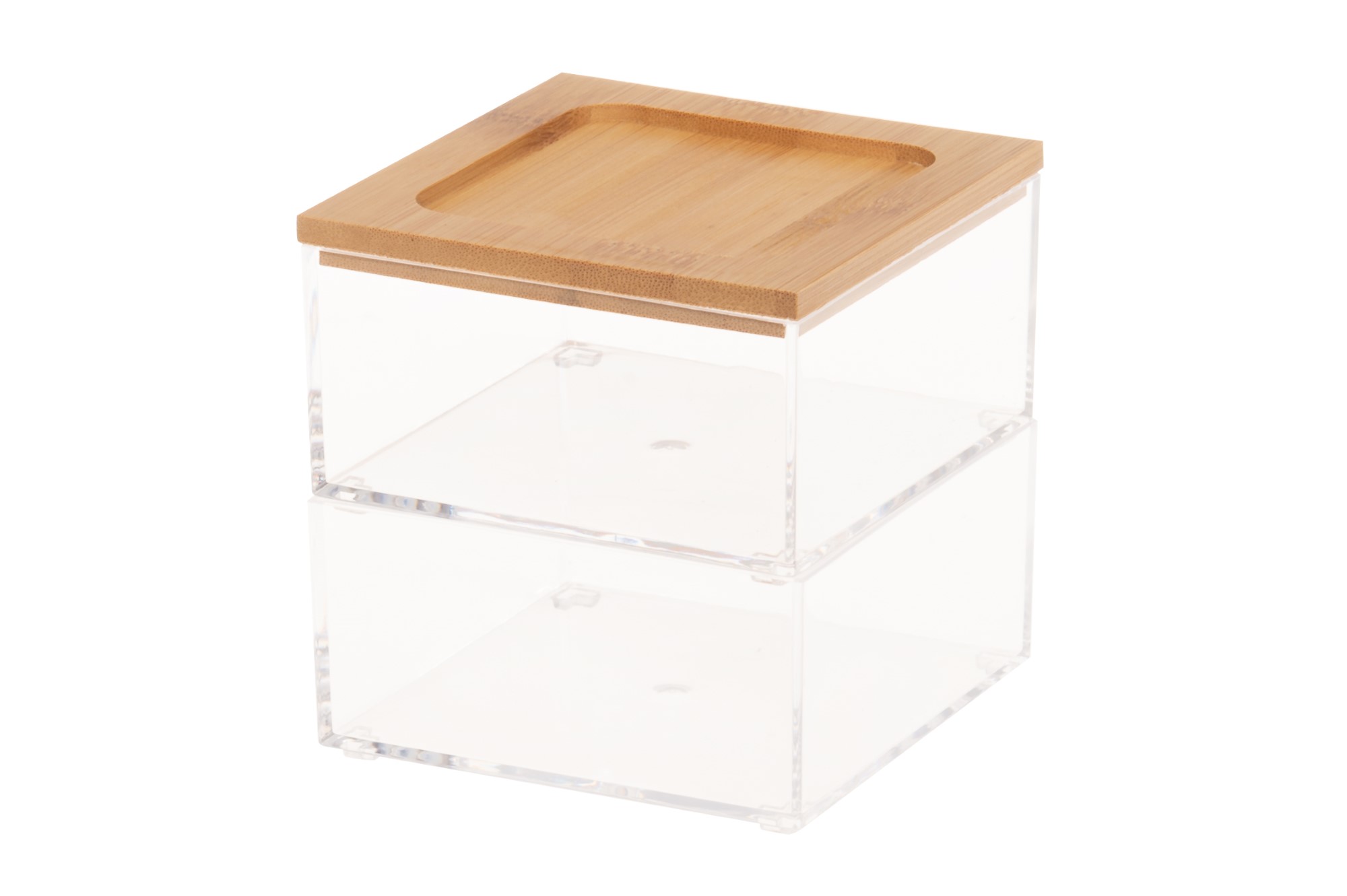 Multifunktionell förvaringslåda med bambulock.