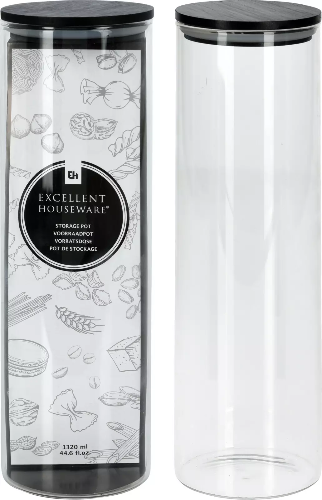 Förvaringsburk, 1320 ml, tillverkad av hållbart borosilikatglas. Elegant svartmålat bambulock med silikonpackning garanterar lufttät förslutning. Burkens mått: diameter 85 mm, höjd 270 mm.... Läs mer