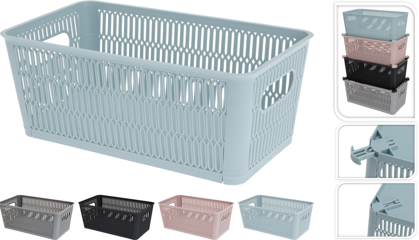 Stapelbar 3,8 L förvaringskorg i fyra färger, passar för effektiv organisering.