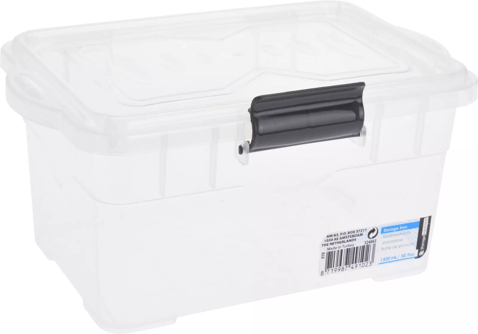 Förvaringslåda 1500 ml transparent svart låsmekanism