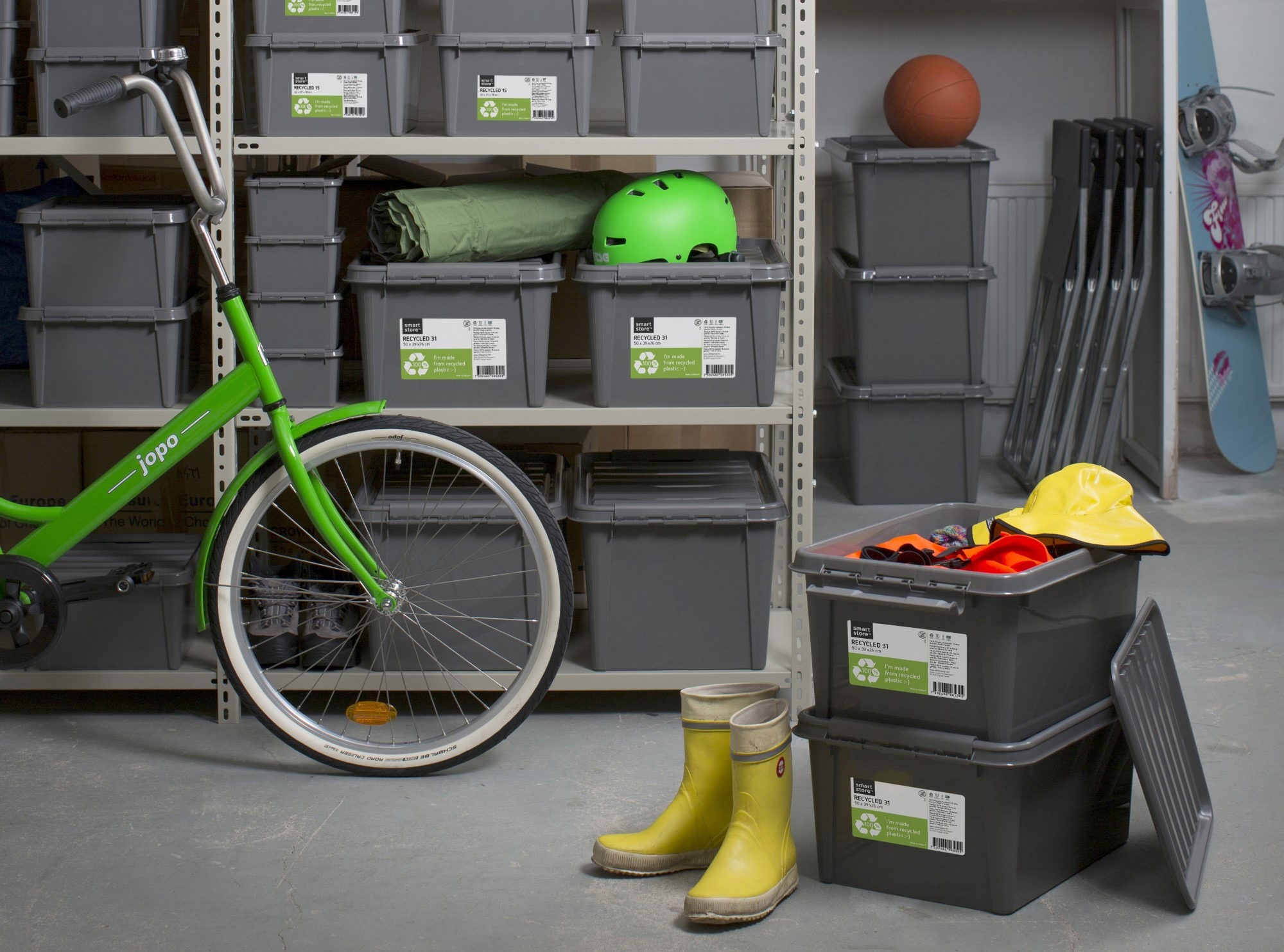 Förvaringsset av återvunnen plast. En idealisk förvaringslåda för långvarig användning, till exempel i lager, källare eller garage. SmartStore™ Recycled 45 är optimal för förvaring av filtar och filtar, stövlar, arbetsredskap, ytterkläder samt sport- och hobbyutrustning.