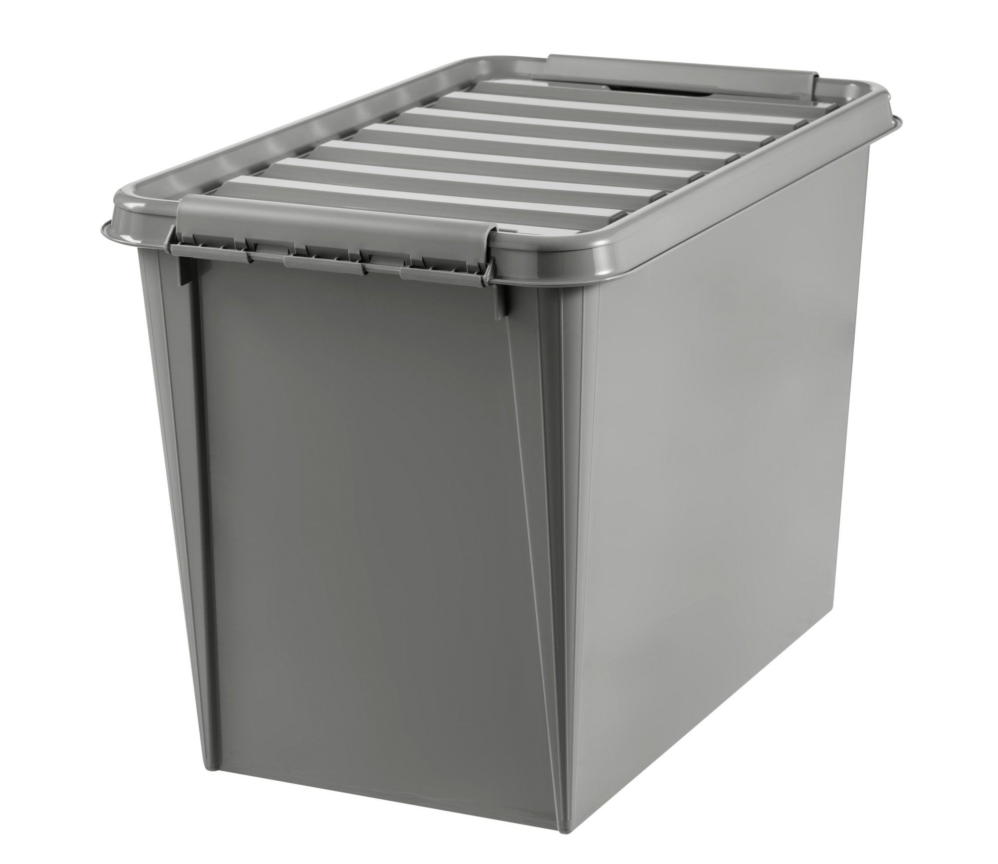 Förvaringslåda av återvunnen plast. En idealisk förvaringslåda för långvarig användning, till exempel i lager, källare eller garage. SmartStore™ Recycled 65 är optimal för förvaring av filtar, filtar, stövlar, verktyg samt sport- och hobbyutrustning. Lådorna staplas inuti varandra utan lock och ovanpå varandra med lock.