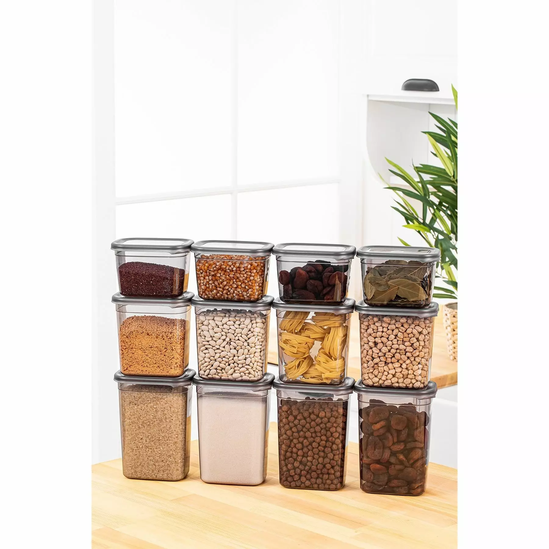 Den antracitfärgade förvaringsboxen ger en elegant touch till ditt kök eller skafferi. Den minimalistiska designen gör att den smälter in i alla inredningar, vilket gör den till ett elegant tillskott i ditt hem. De transparenta locken gör att du enkelt kan identifiera innehållet utan att öppna varje låda, vilket sparar tid och ansträngning.