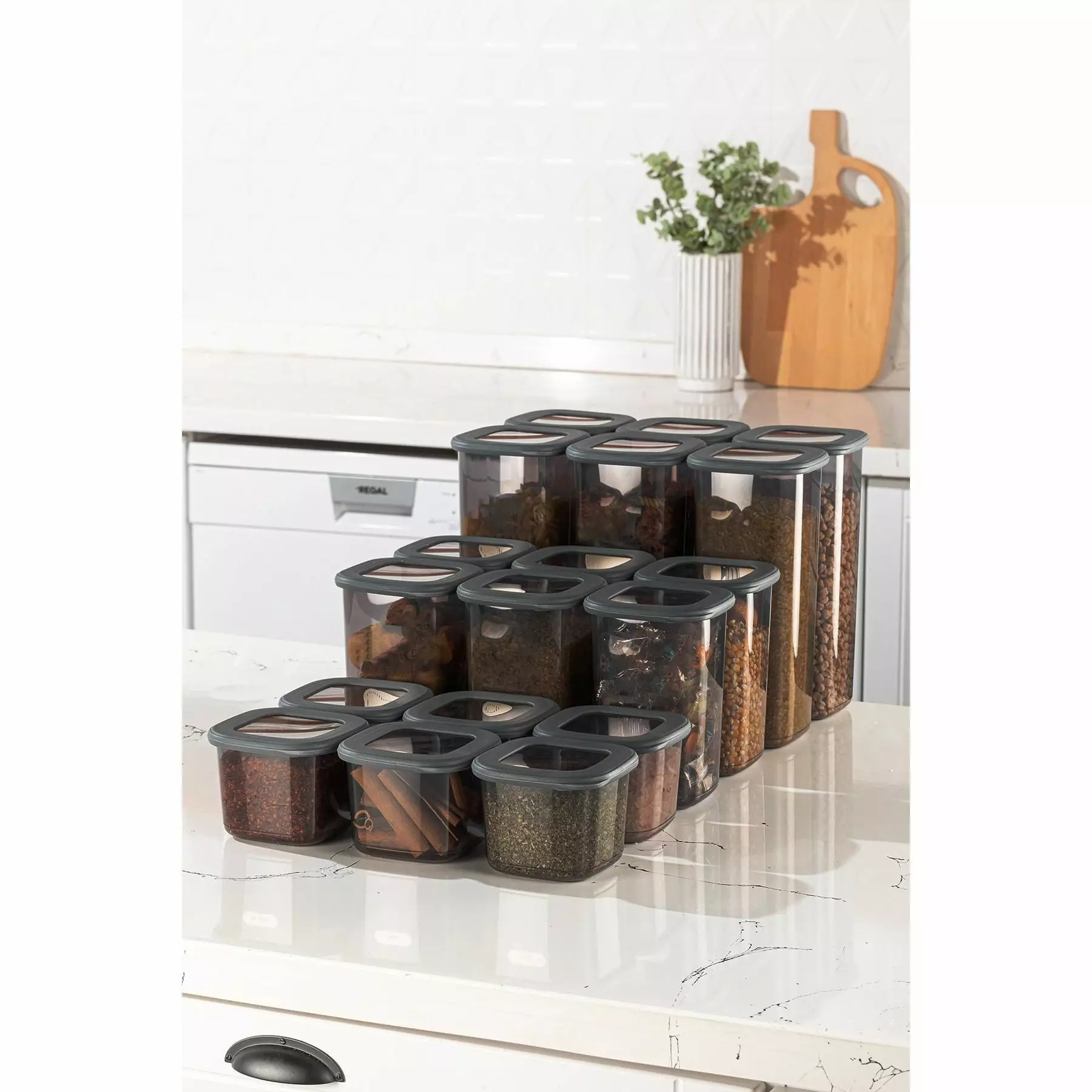 Är du trött på röriga bänkskivor och stökiga skåp? Titta inte längre än till vårt förvaringsboxset för att få ordning och harmoni i ditt hem. Med totalt 18 delar är detta set perfekt för förvaring av alla dina nödvändigheter, från köksingredienser till kontorsmaterial.