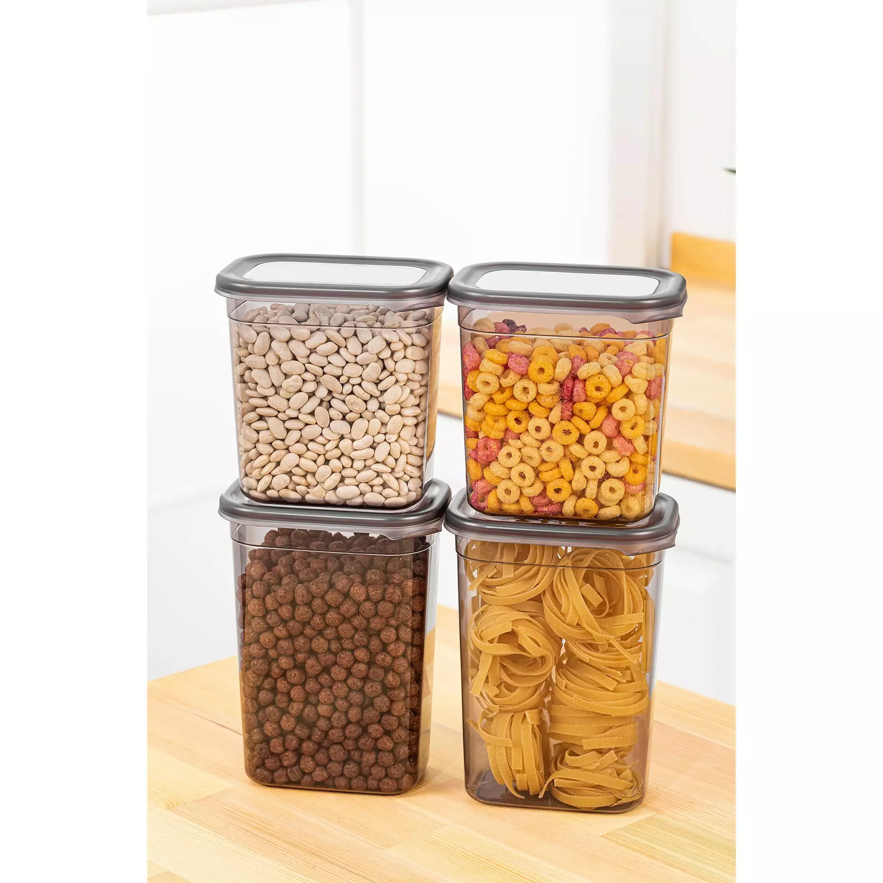 Med totalt fyra delar erbjuder detta set en mängd olika storlekar för att tillgodose alla dina förvaringsbehov. De två större lådorna mäter 14 x 14 x 10 cm och har en kapacitet på 1150 ml, medan de två mindre lådorna mäter 10,5 x 10,5 x 9 cm och har en kapacitet på 1500 ml. Oavsett om du behöver förvara små prydnadssaker eller större föremål så har det här setet allt du behöver.