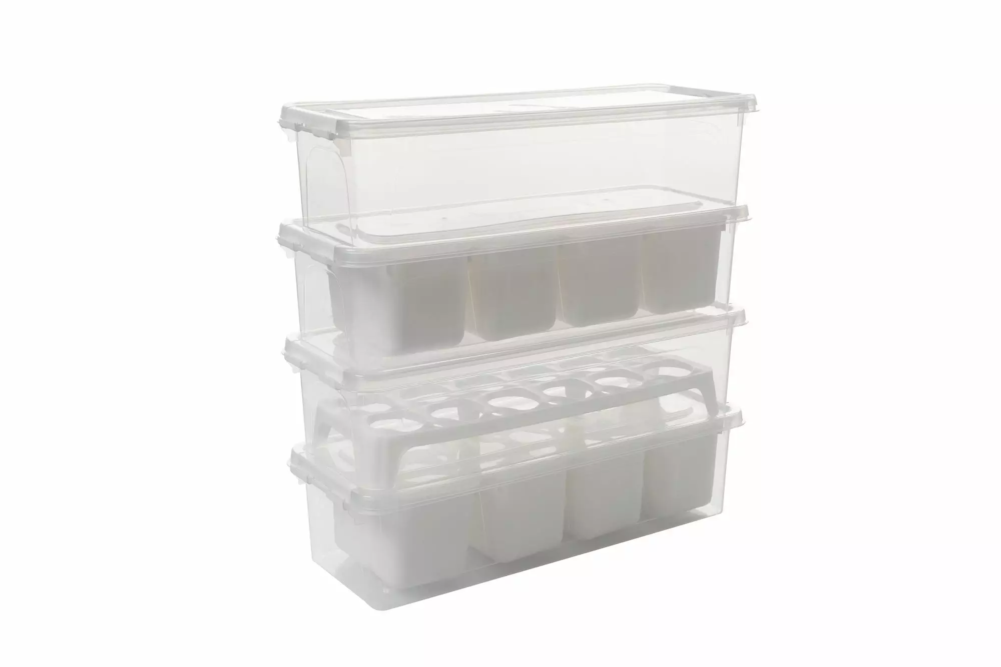 Dessa förvaringslådor är tillverkade av 100% plast och är byggda för att hålla länge. Det bpa-fria materialet säkerställer att din mat och andra föremål förvaras säkert. Den genomskinliga designen gör att du enkelt kan se vad som finns i varje låda, vilket gör det enkelt att hitta det du behöver.