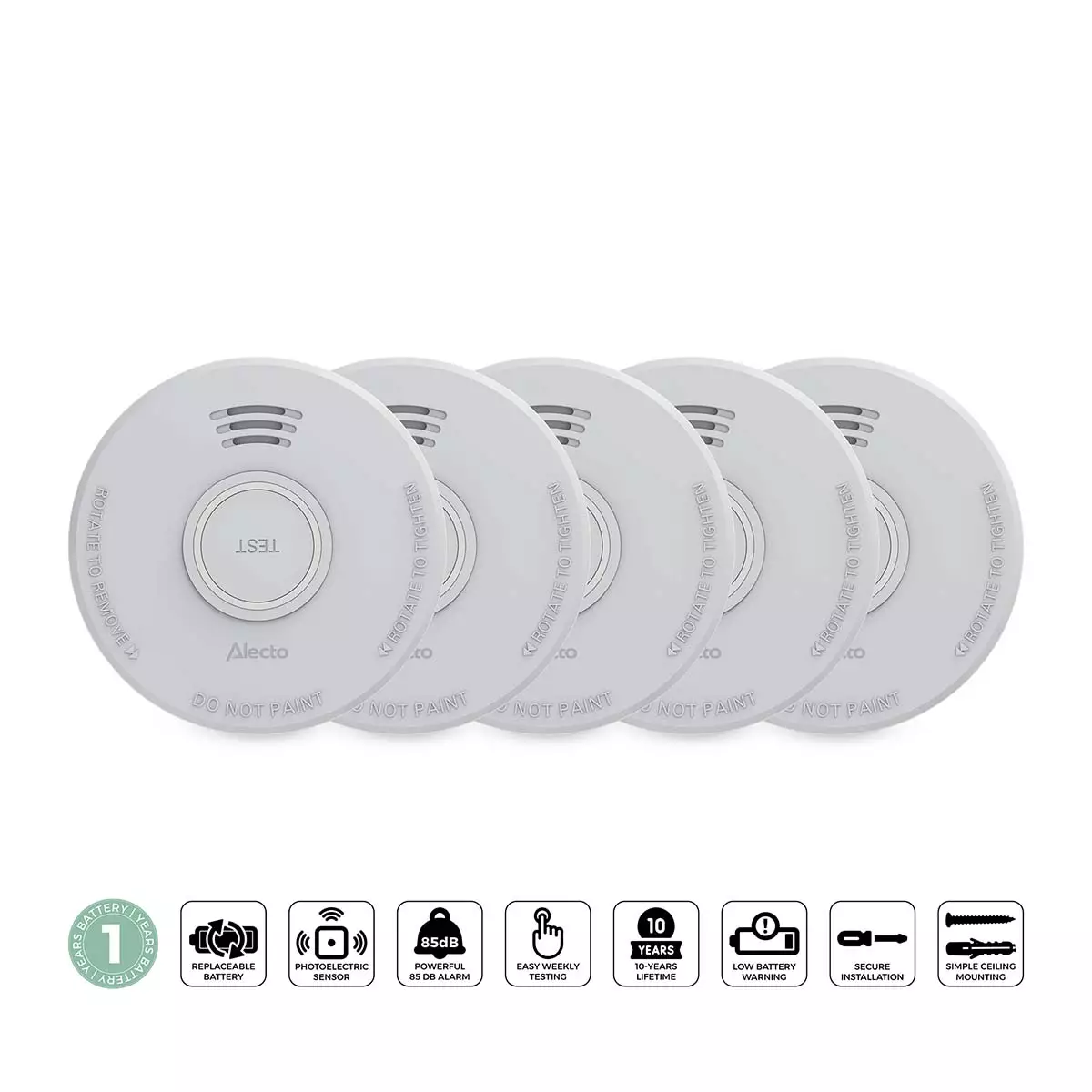 Fristående brandvarnare med 1 års batteri 5 st