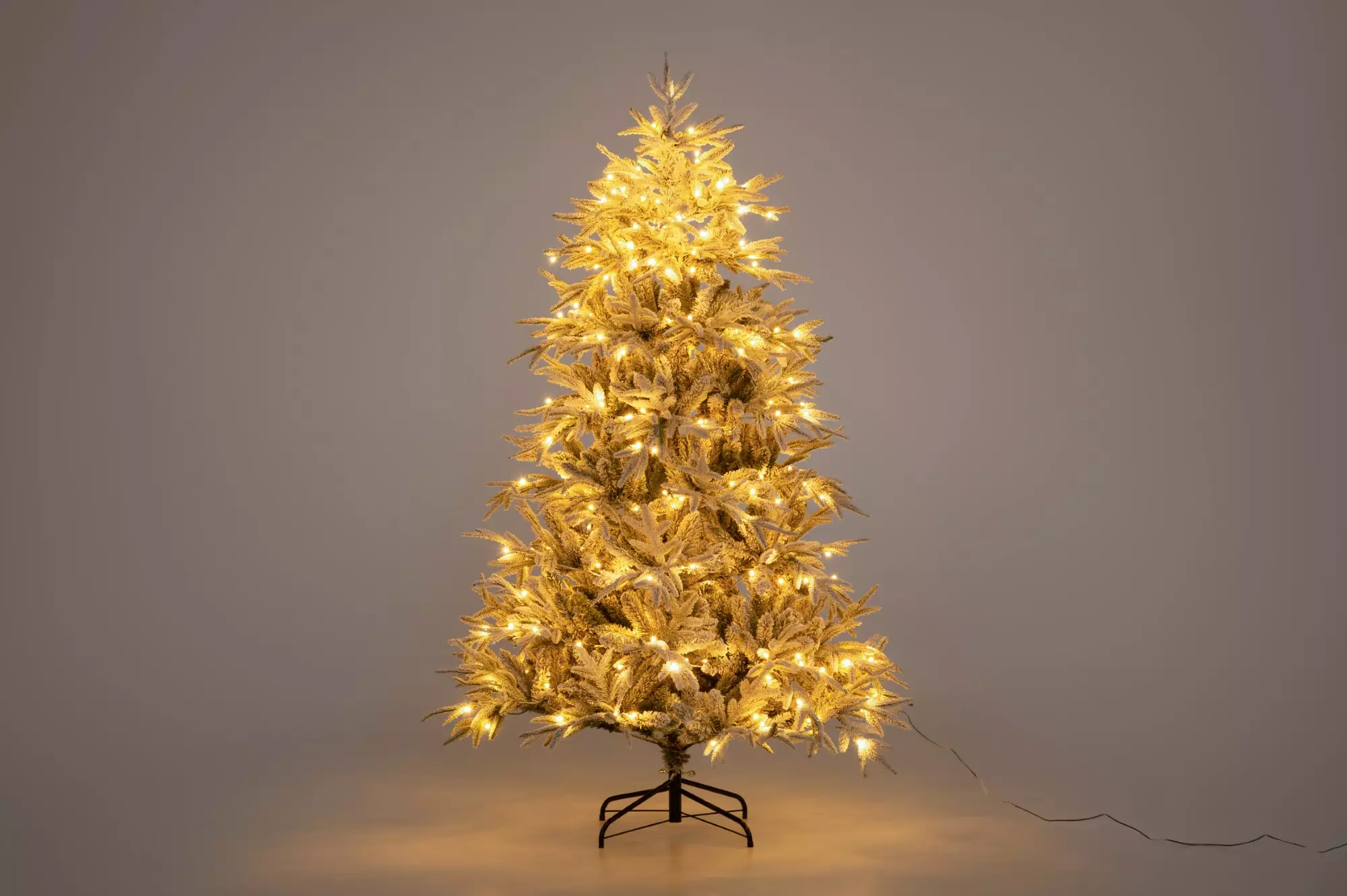 Granen har 300 LED-lampor med en livslängd på upp till 50 000 timmar. Med den medföljande transformatorn med fjärrkontroll kan du välja mellan åtta olika ljuslägen och använda timerfunktionen (6 h på / 18 h av):
