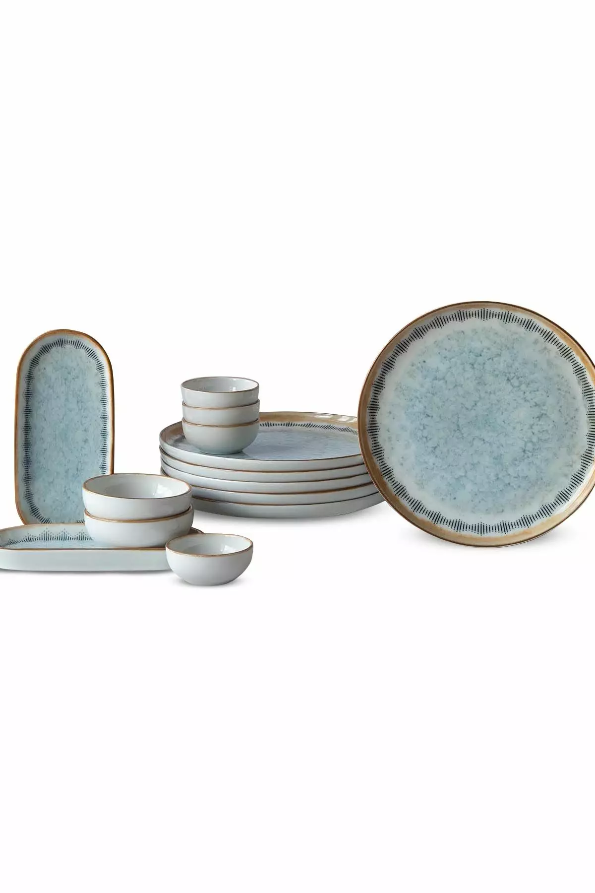 Föreställ dig att börja dagen med ett vackert set bord, med våra utsökta servicplattor, jokerskålar och plattor i en harmonisk blandning av vita, blå och kamelfärger. Denna frukostuppsättning är utformad för att höja din matupplevelse och få en touch av sofistikering till din morgonrutin.
