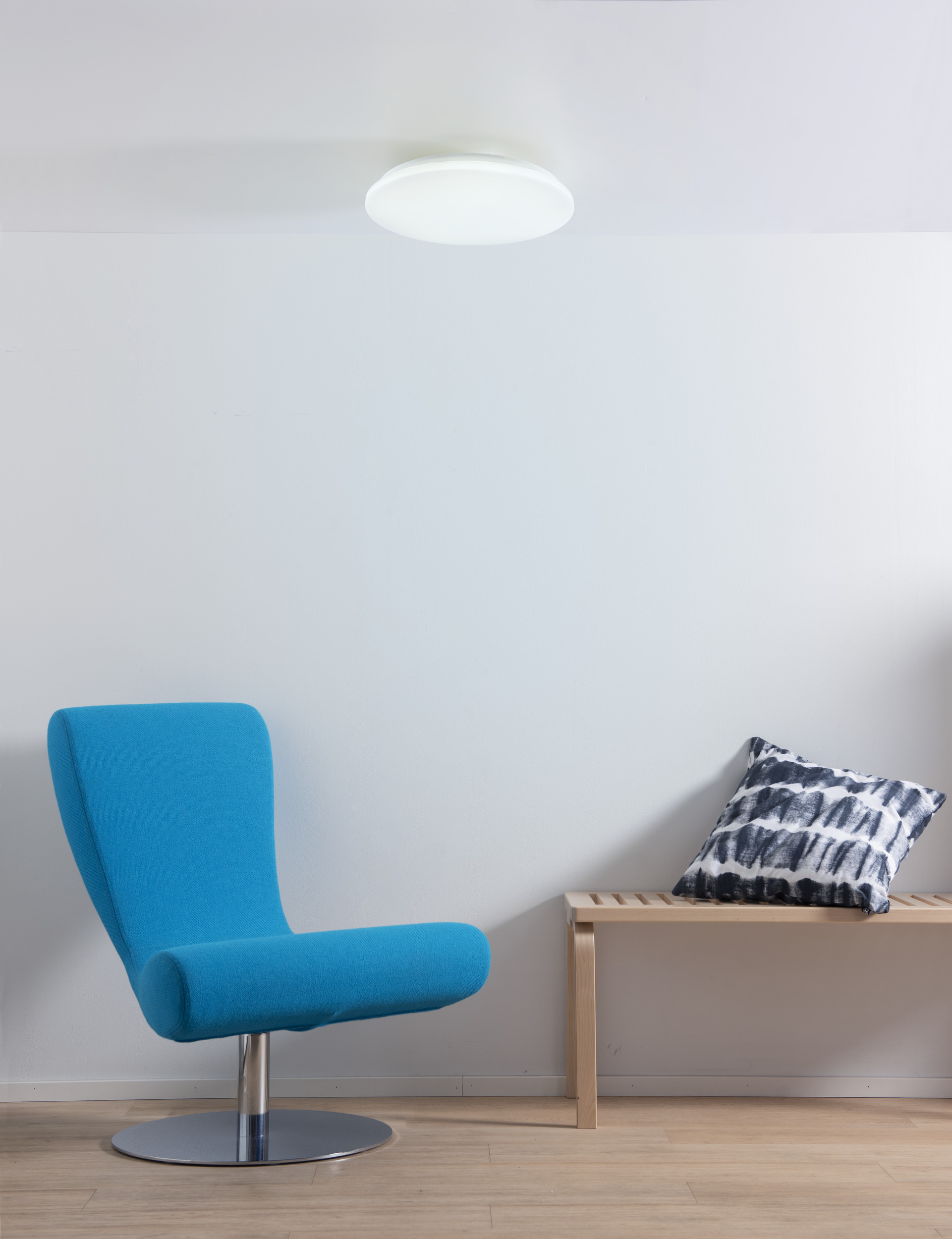 Den trendiga Airam Gaia Slim-plafonden med sin distinkta design och jämna belysning är ett bra val för inomhusbruk i hemmet: hall, vardagsrum, sovrum eller kök. Du kan reglera LED-ljusets färg från varmt till klart och dämpa ljuset efter behov med ett lättanvänt fjärrstyrningsprogram med minnesfunktion, som du kan använda för att styra upp till fyra Gaia-armaturer. Monteringen går lätt med medföljande armaturstickpropp och snabbfäste eller med skruvinfästning i taket.