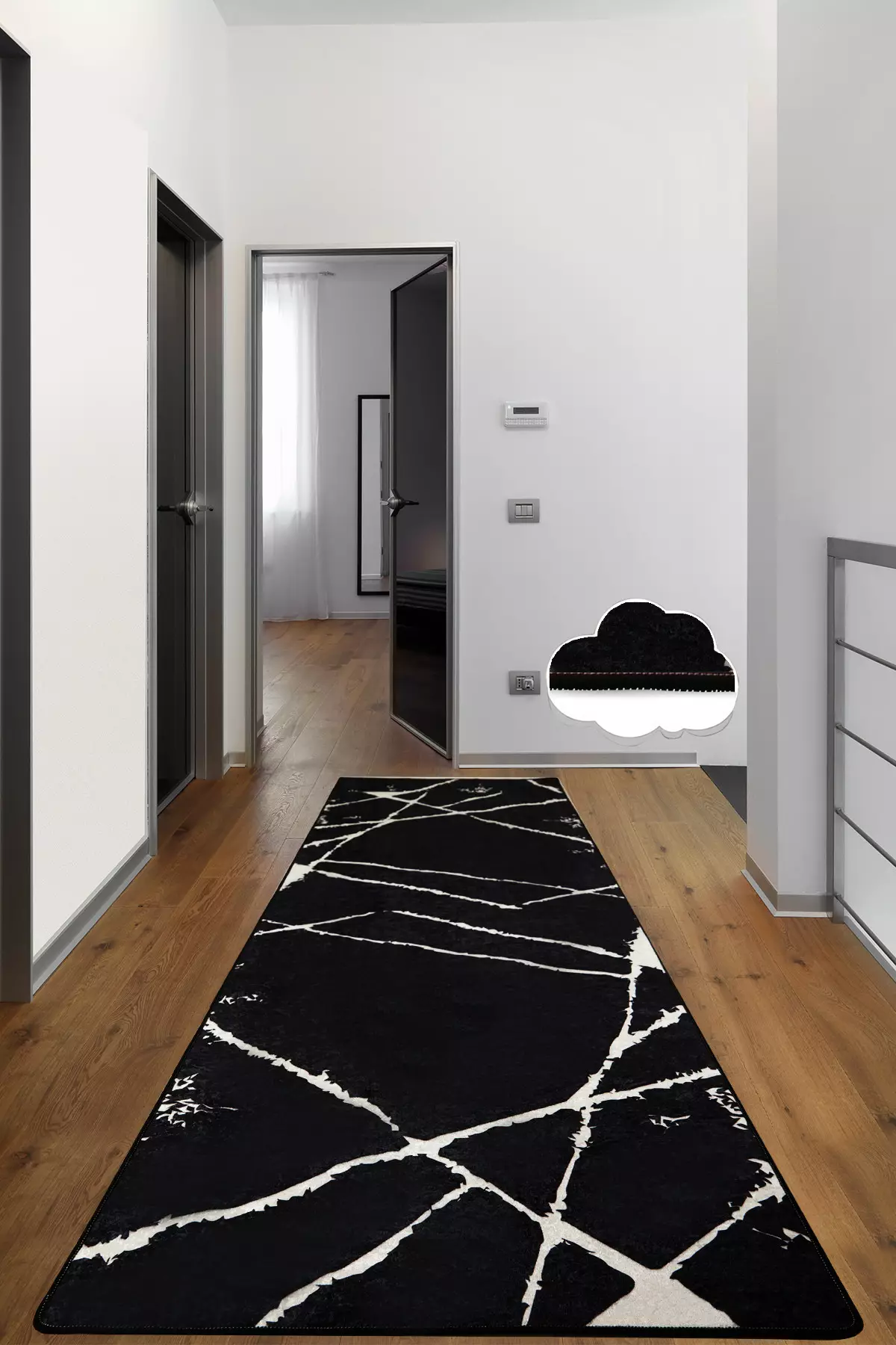 Hallmattan har en fängslande blandning av svarta och vita färger som ger din hall en touch av sofistikering och elegans. Den mångsidiga designen kompletterar enkelt alla inredningsstilar, vilket gör den till ett perfekt val för alla hem.