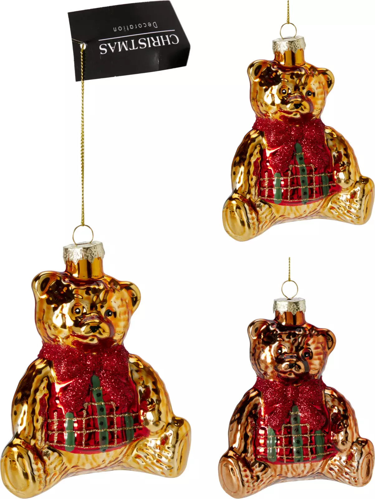 Elegant glashänge med björnmotiv och gyllene upphängningsband som ger värme och elegans till festligheterna. Ett perfekt tillskott till julgransdekorationen.