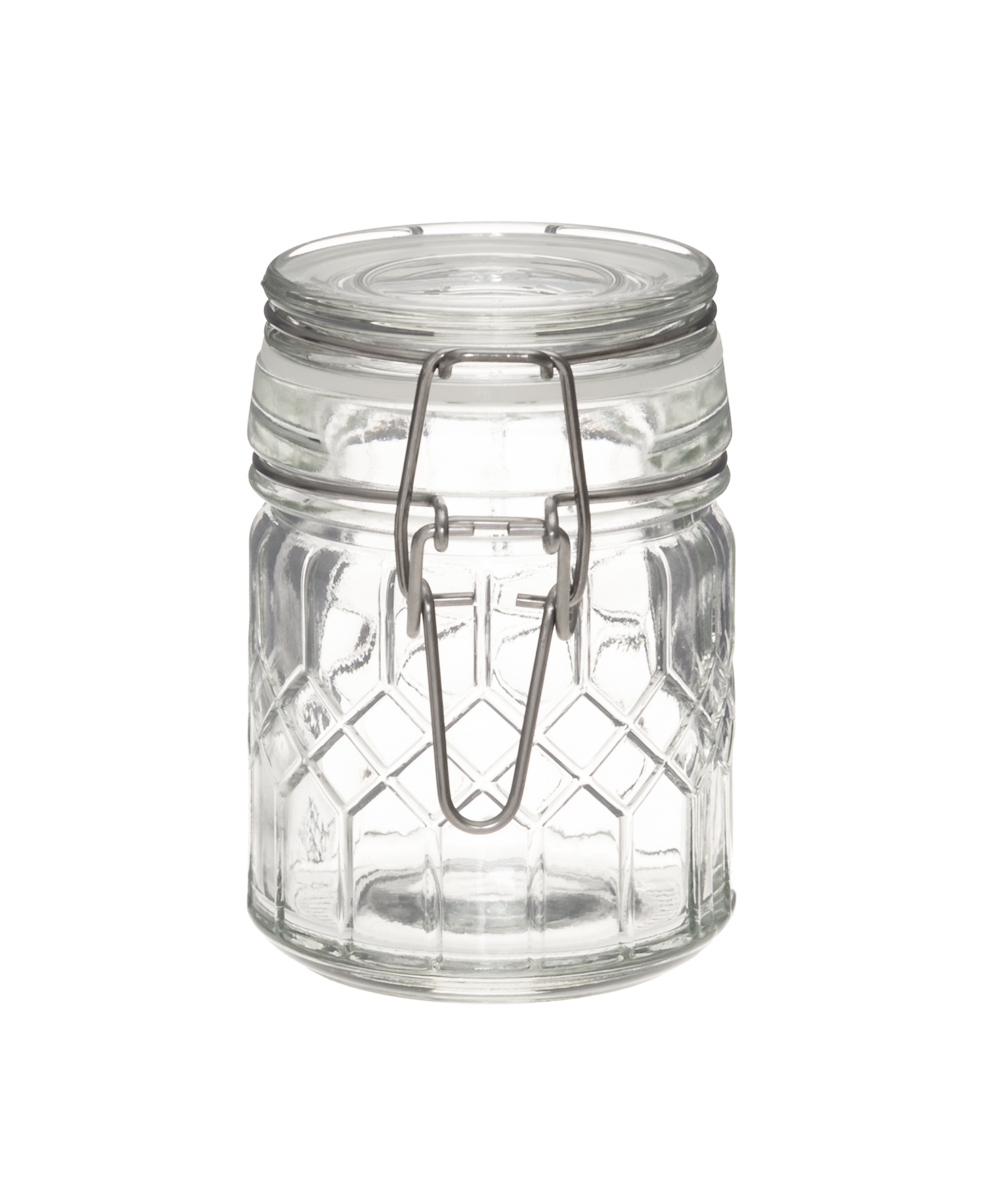 En vacker glasburk med mönster och patentlock. Silikon tätning. Handtvätt.
