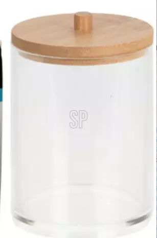Förvaringslösning för smink: Elegant cylinderburk med bambulock, 70 mm x 105 mm. Modern look för köket eller badrummet.