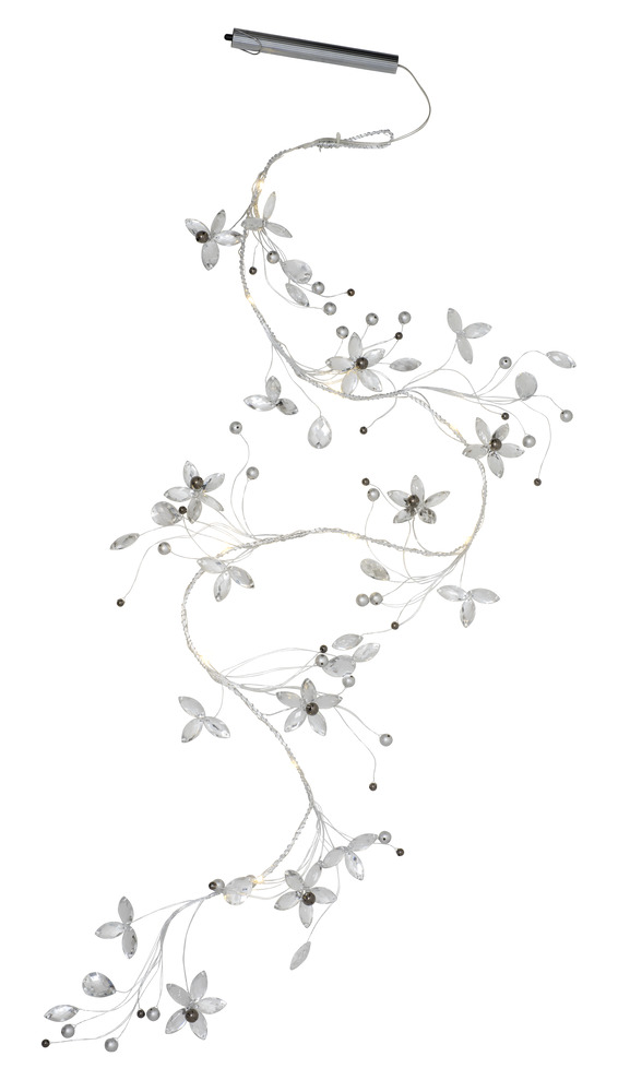 Glitter dekorerad blomma / pärlsats för mångsidig dekoration. Kan böjas i olika former. Inkluderar batterier. Batterifodral i ett smalt metallrör med hängande ögla. Led varmvitt, ej utbytbart. Sladd klar. På / Av knapp.