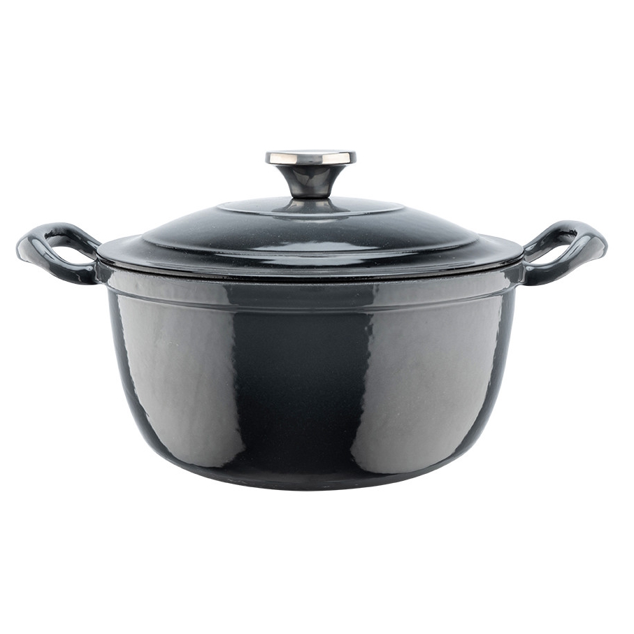 Rejäla kastruller och stekpannor i gjutjärn håller för evigt om de sköts om på rätt sätt! Långkok hos gjutjärn är överlägsna. Gjutjärnsgrytan är en utmärkt värmeackumulator och lagar mat vid låg temperatur. Mat bör inte förvaras i en gjutjärnsgryta under lång tid, eftersom det kan få ytan att rosta. Den matta emaljeringen av innerytan skyddar ytan från att rosta, och tack vare den matta emaljeringen är kitteln lätt att rengöra! Blank emaljering på utsidan. Grytan passar alla spisar och ugnar.