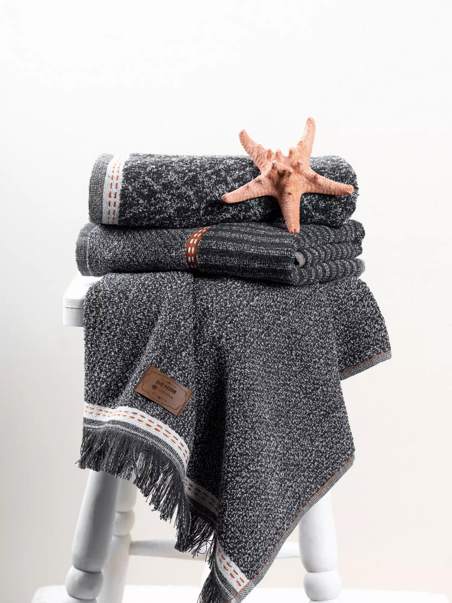 Antracitfärgen på vårt handduksset ger en sofistikerad touch till alla badrum. Den eleganta och moderna designen kompletterar alla inredningsstilar och skapar en harmonisk och inbjudande atmosfär. Förvandla ditt badrum till en fristad för avkoppling och stil med vårt eleganta handduksset.