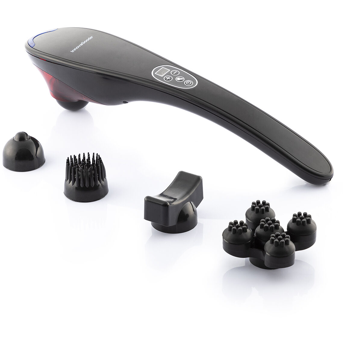InnovaGoods Handmassager är en laddningsbar massager med ergonomiskt handtag, som erbjuder 12 massageprogram och infraröd värme. Lämplig för massage av olika kroppsdelar.