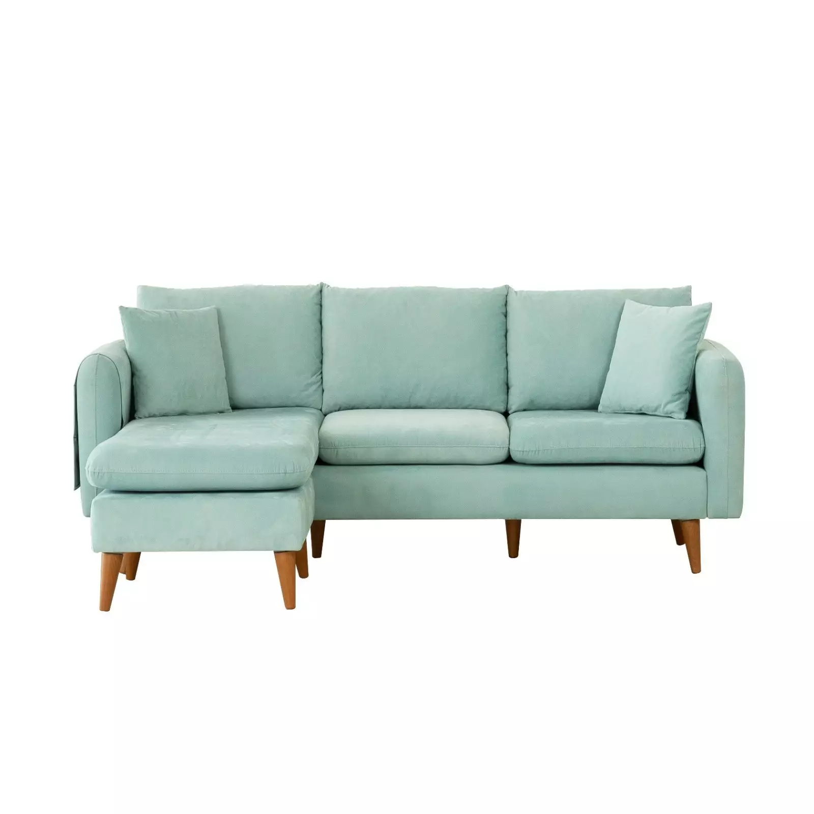 Denna soffa har en vacker havsgrön färg och ger enkelt en färgklick till alla rum. Den enkla, enfärgade designen utstrålar sofistikering och mångsidighet, vilket gör den till ett perfekt tillskott till både moderna och traditionella inredningar. Träbenen, som är 18 cm långa, tillför en touch av elegans och höjer den övergripande estetiken.
