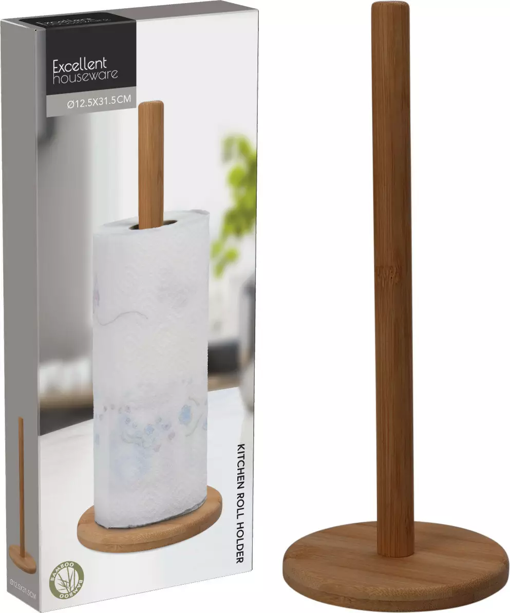 Hushållspappershållare tillverkad av bambu är ett stilfullt och praktiskt tillskott till ditt kök. Hållarens mått är 12,5 x 31,5 cm och den är designad för att enkelt förvara en hushållspappersrulle. Den lätta hållaren, som väger 190 gram, är enkel att placera var som helst i köket. Denna hållbara och miljövänliga bambuhållare ger naturlig elegans och funktionalitet till vardagssysslor.