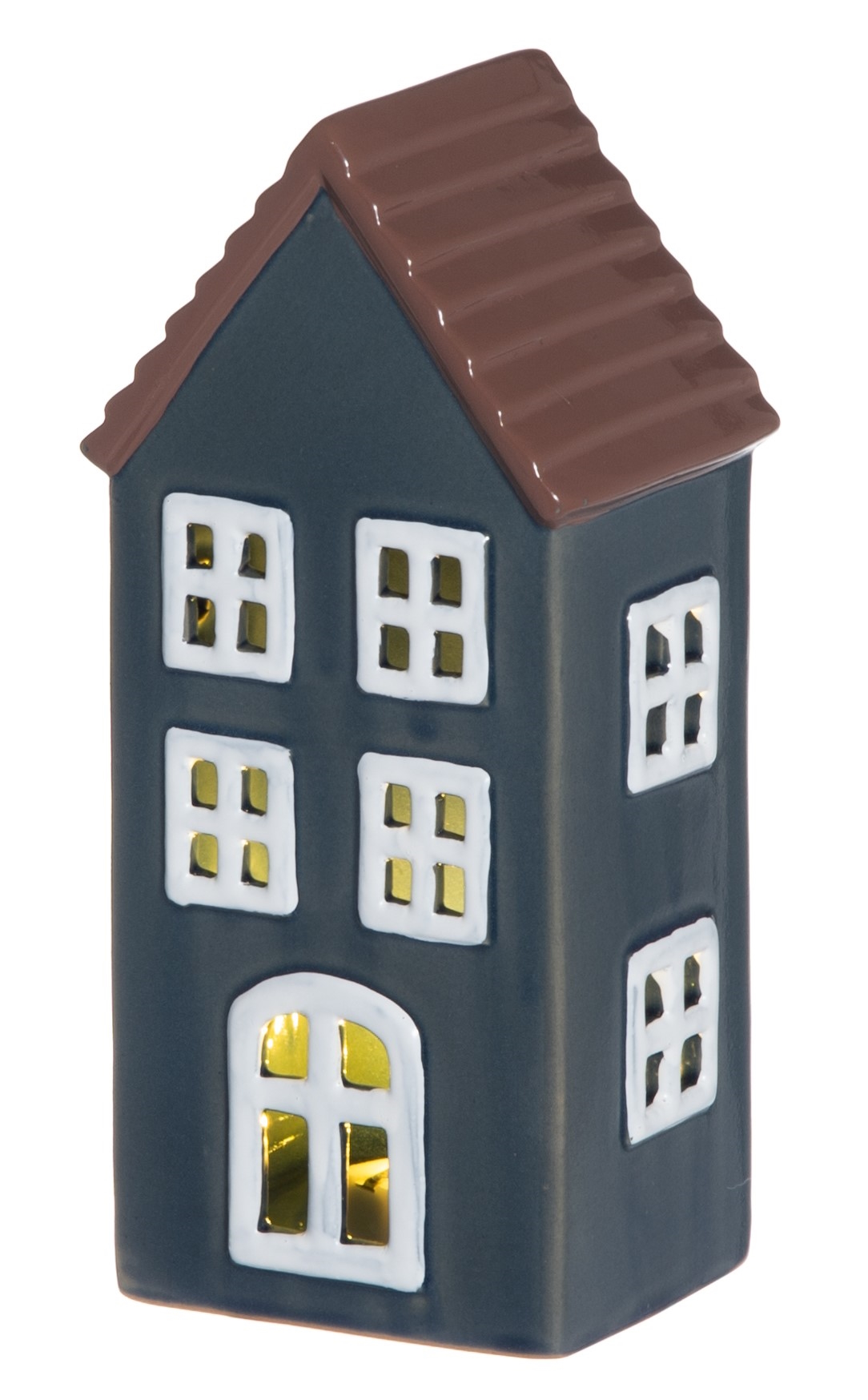 De charmiga keramiska husformade lyktorna ser vackra ut både ensamma och i ett arrangemang av flera delar. Bygg din egen lyktastad. Lyktan har LED-ljus och timerfunktion 6h on/18h off. Batteri 2 x LR44 (ingår).