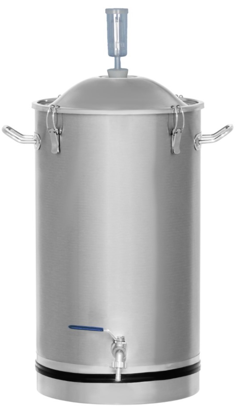 Jäskärl med kran, vattenlås, lock och gummipropp för tryckutjämning. Stålbotten och anständiga handtag. 4 lås. Hål i omslaget 32 mm. Perfekt även som vatten- / saftbehållare.