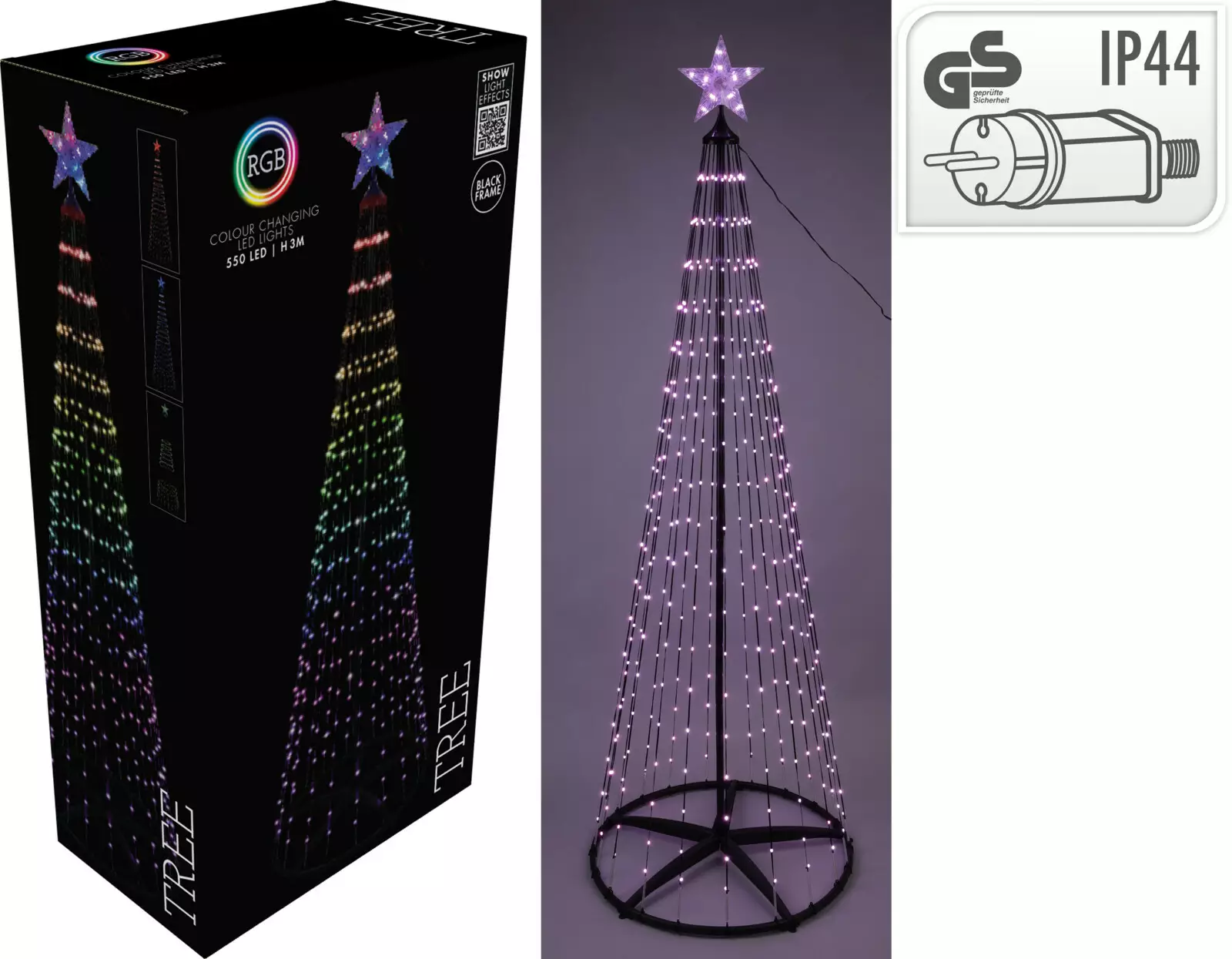 Julgran 300cm 550 RGB LED Ljusstjärna Svart Ram För Utomhus- och Inomhusbruk IP44 Fjärrkontroll