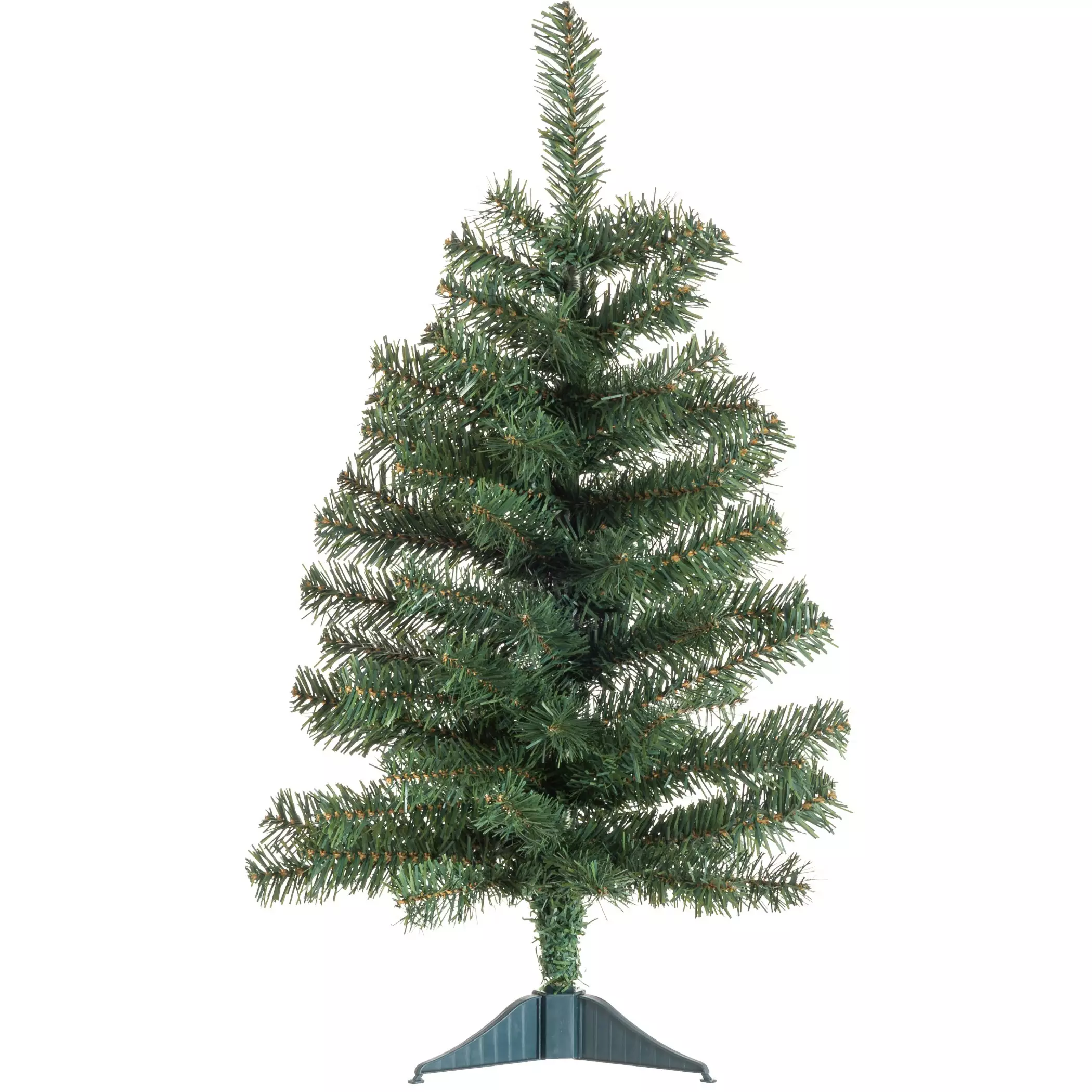 Kompakt 60 cm konstgjord gran med 80 grenspetsar. Inkluderar plastfot. Tillverkad av icke-brännbart material.