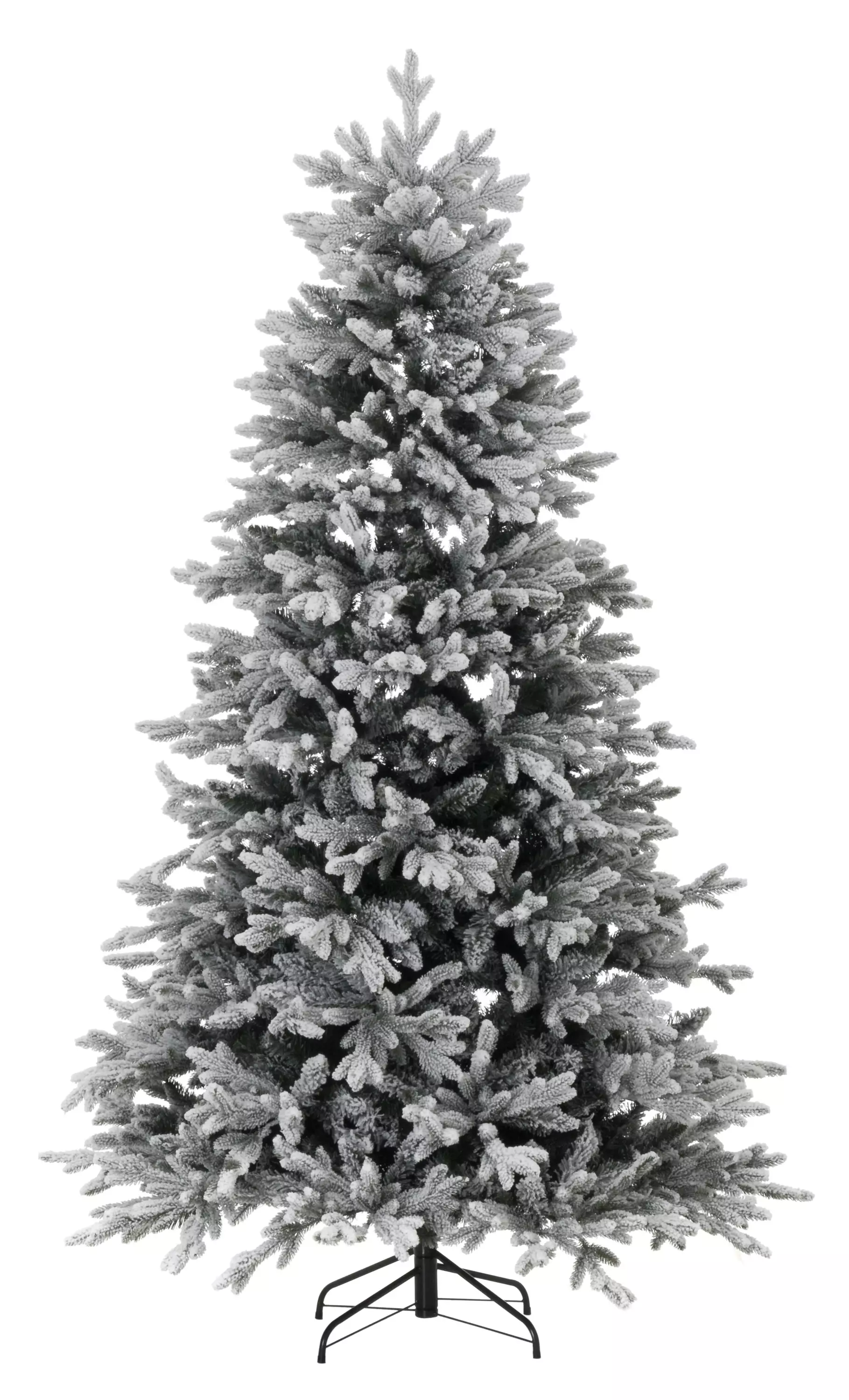 En underbar buskig konstgjord gran med snöiga grenar. Mycket prålig med dekorationer. Ett vackert och autentiskt konstgjort träd ger en härlig julstämning år efter år, och den fäller inte barr längs golven eller kräver underhåll. Ett utmärkt val för inomhusbruk för allergiker. Granen har gångjärnsgrenar och 1209 grenspetsar. Bredden på underdelen i sin fulla dimension är ca 125 cm, den kan bli smalare om grenarna viks mot väggen. Ett robust metallben ingår. Granens höjd är 210 cm och den är gjord av icke brännbar PVC.