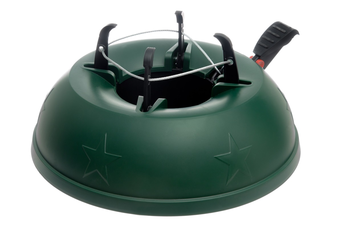Genom att trycka med foten öppnar mekanismen spänningen, vilket gör det enkelt att glida granstammen in i foten. 1,1 liter vatten räcker för att en törstig barrträd hela kvällen. Måtten på den gröna plastfoten är 39 x 39 x 17,3 cm. Höjden på det här julgran som ska in i foten kan vara maximalt 3 meter och stammens diameter 14 cm.