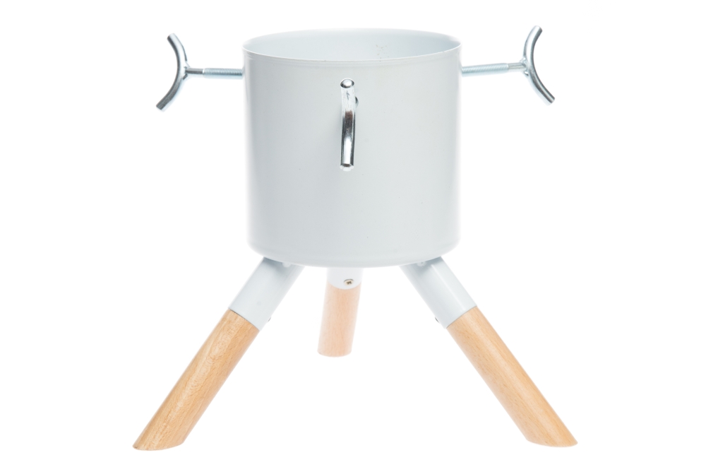 Julgransfot, nu i trendig snygg vit färg! Den imponerande släta foten är tillverkad i vitbelagd metall och naturligt trä. Den robusta foten på 2 kg klarar av att hålla en gran på upp till 50 kg, med en max diameter på 10 cm. Längden kan då vara max 2,2 meter. Granens fot dras åt med fyra kromfärgade metallskruvar. Behållaren rymmer 1,2 liter vatten. Denna snygga julgransfot fungerar även till konstgjorda julgranar.
