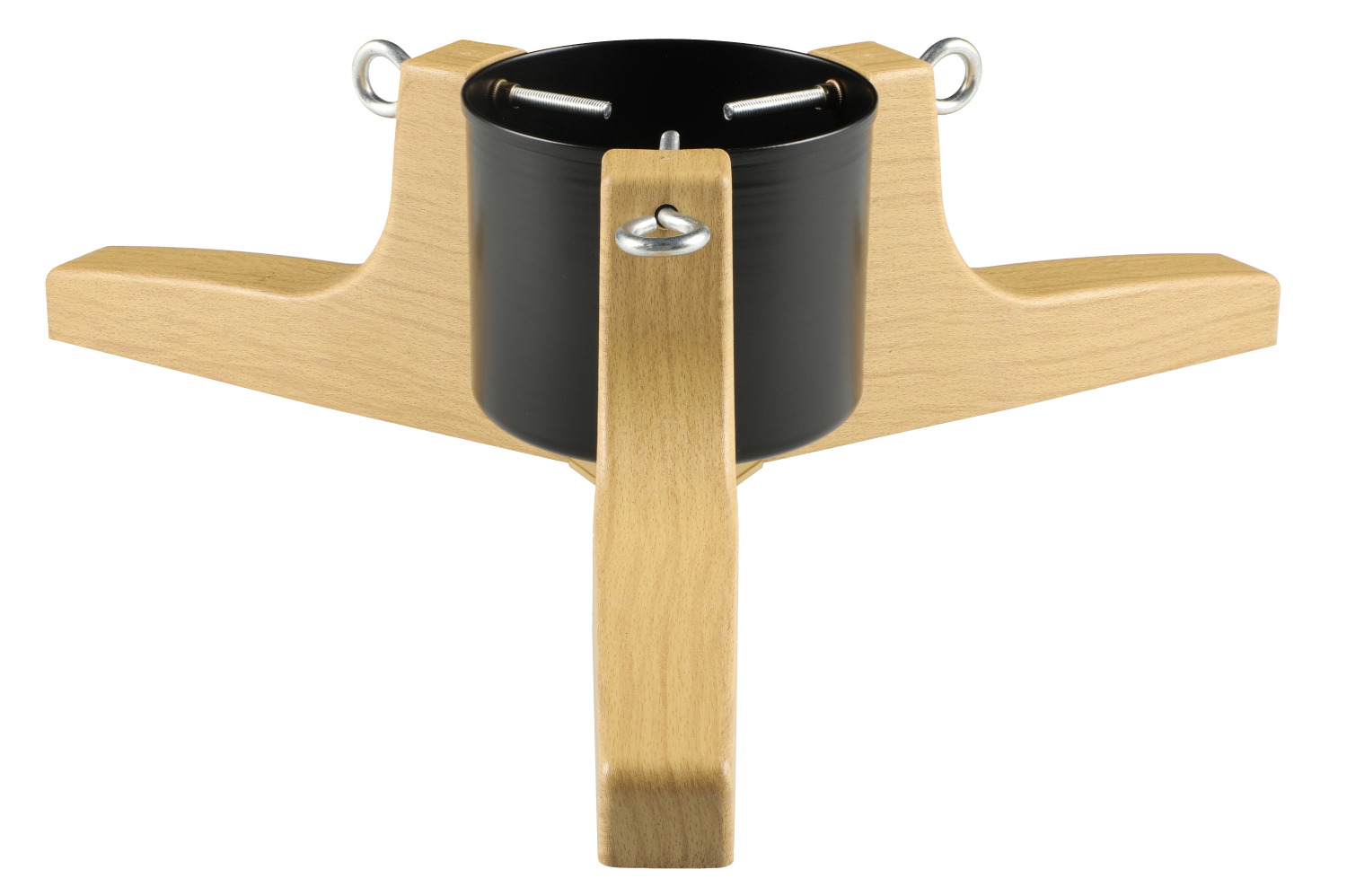 Snygg julgransfot med svart metallbehållare och imiterade träben.