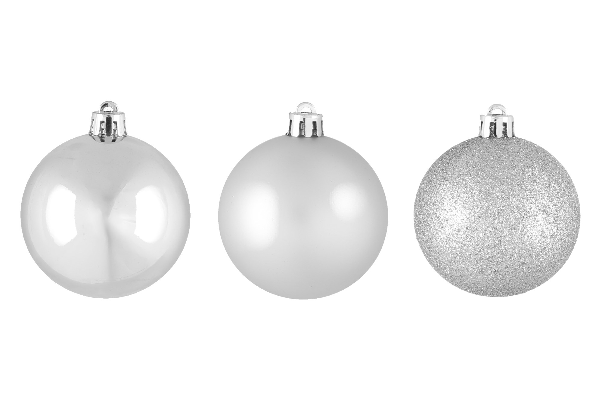 Paketet innehåller julgranskulor med tre olika finish (blank, glitter och matt), så att du snabbt kan lägga till din samling av olika dekorationer och du kan trolla fram mångsidiga och spektakulära dekorationer. Förmonterade hängsnören.