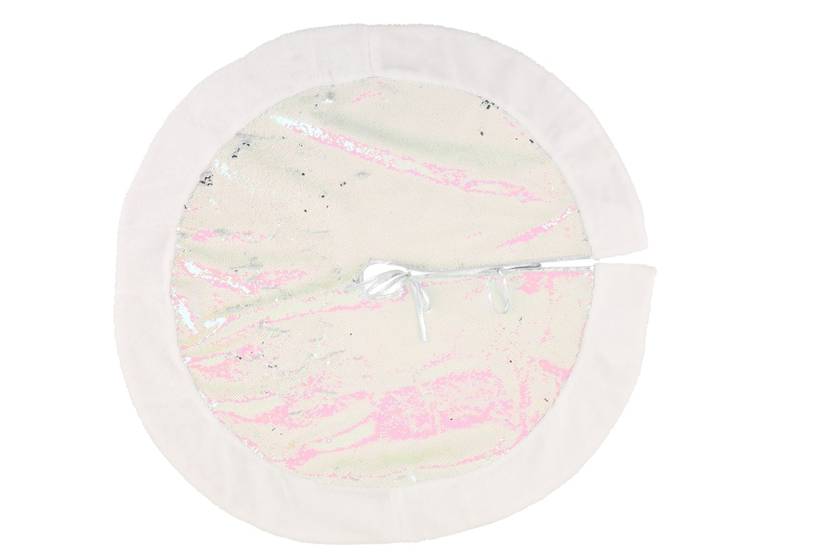 Julgransmatta med paljetter. Paljetterna går att vända och de är vita på ena sidan och silver på den andra.