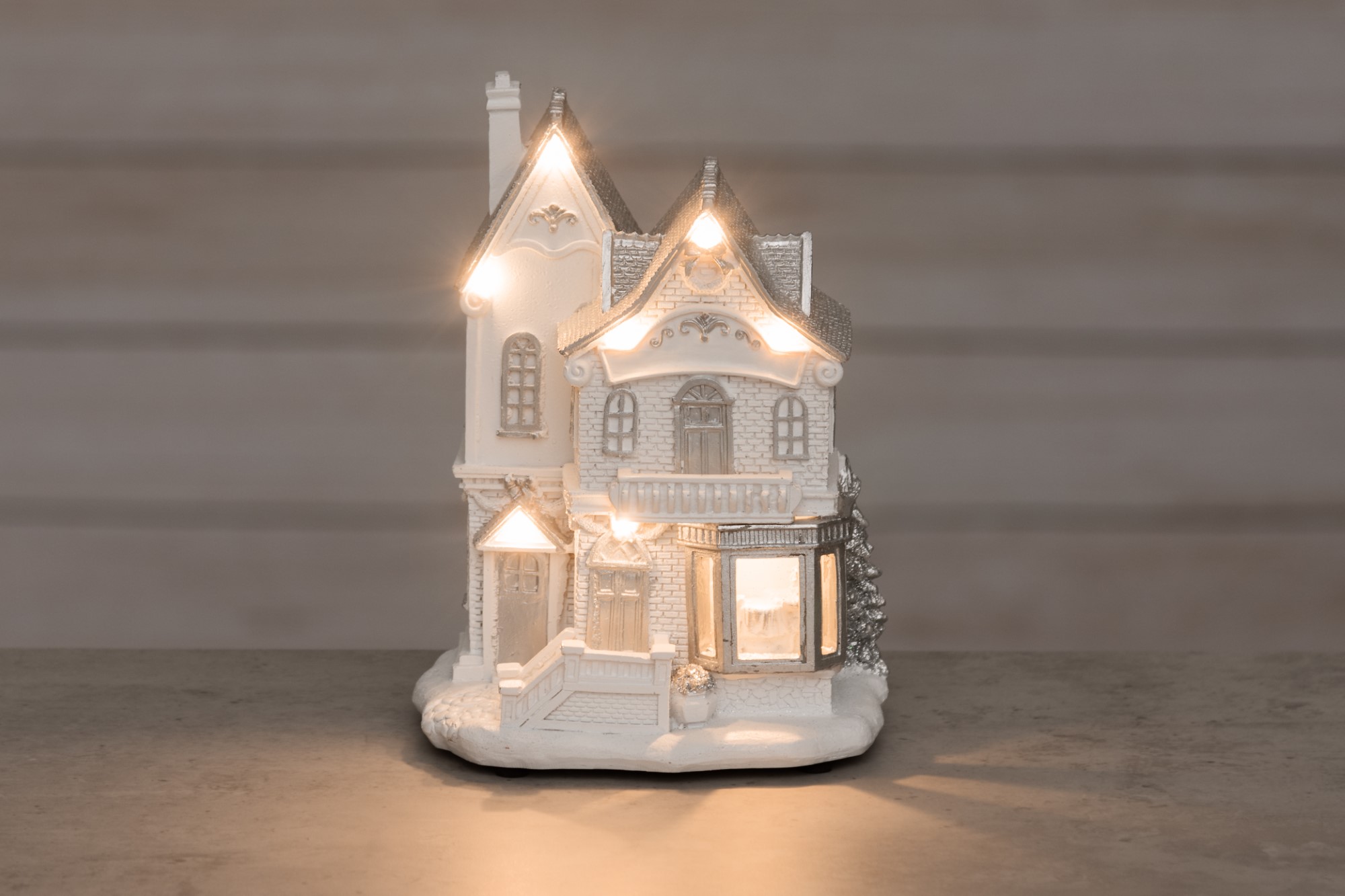 Vitt hus med 8 led lampor. Timerfunktion 6h på, 18h av.