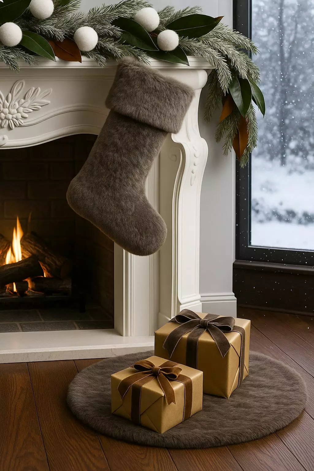 Den eleganta grå färgen på denna strumpa kommer att komplettera vilket juldekortema som helst, oavsett om du föredrar traditionellt röd och grön eller en mer modern färgskala. Häng den vid eldstaden, på trappan eller vid foten av din säng för att lägga till en touch av julmagi i ditt hem.