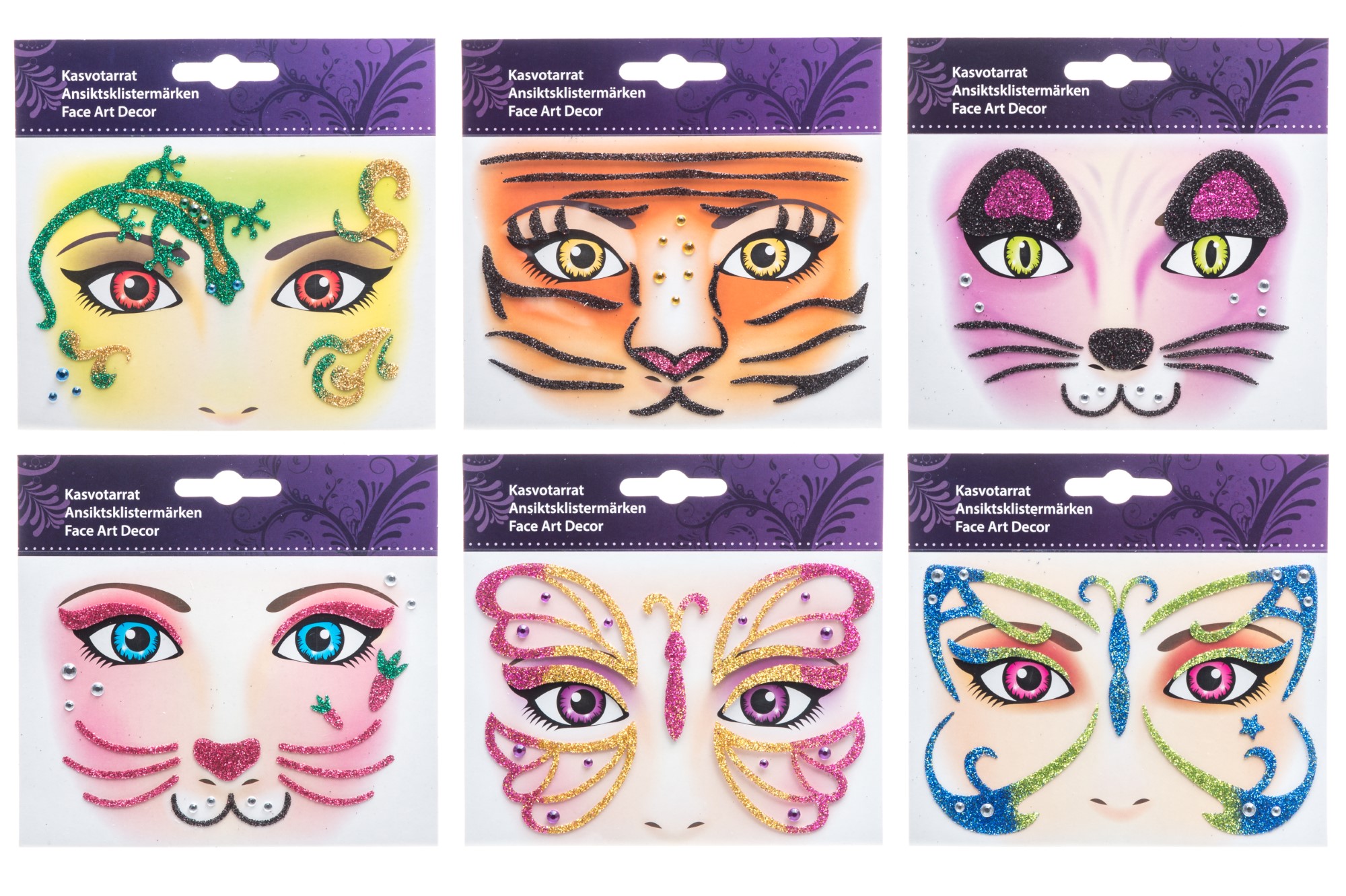 Klistermärken för ansiktet Snygga och roliga ansiktsklistermärken. Bruksanvisning: Ta försiktigt bort ett klistermärke i taget från skyddspappret och placera på ansiktet där du vill. När du... Läs mer
